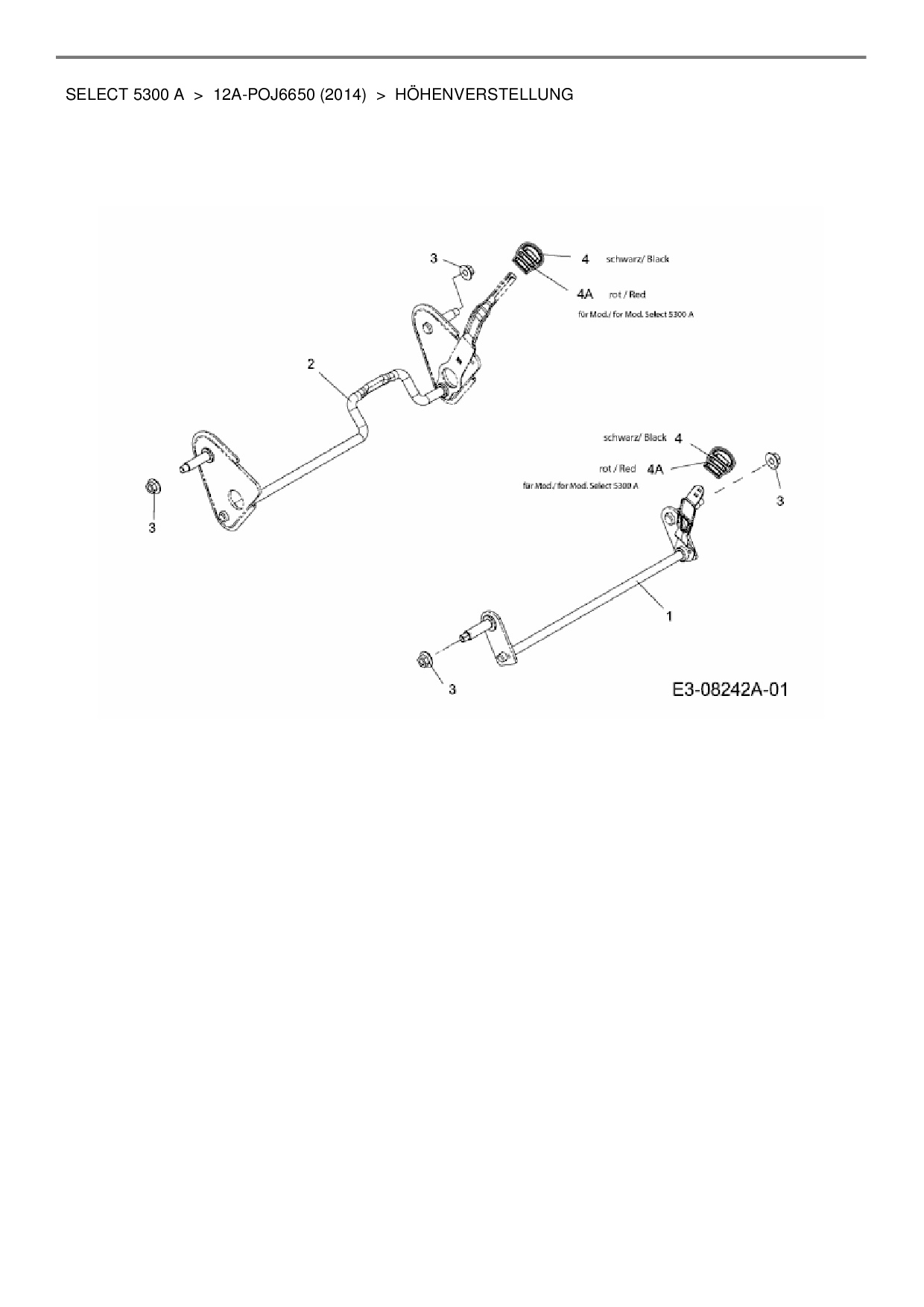 Ersatzteile für Motormäher mit Antrieb Wolf-Garten Select 5300 A aus der Zeichnung Höhenverstellung: