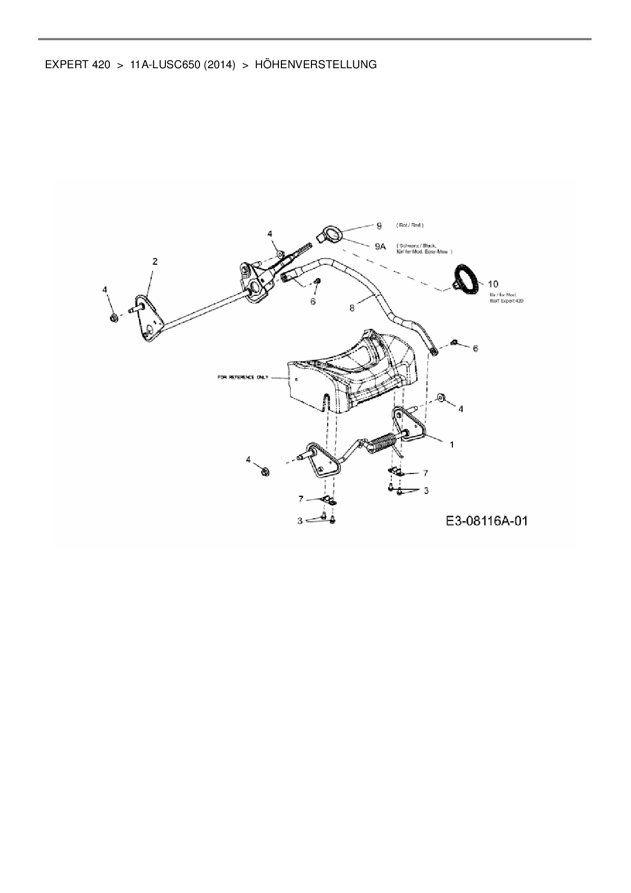 Ersatzteile für Motormäher Wolf-Garten Expert Expert 420 aus der Zeichnung Höhenverstellung: