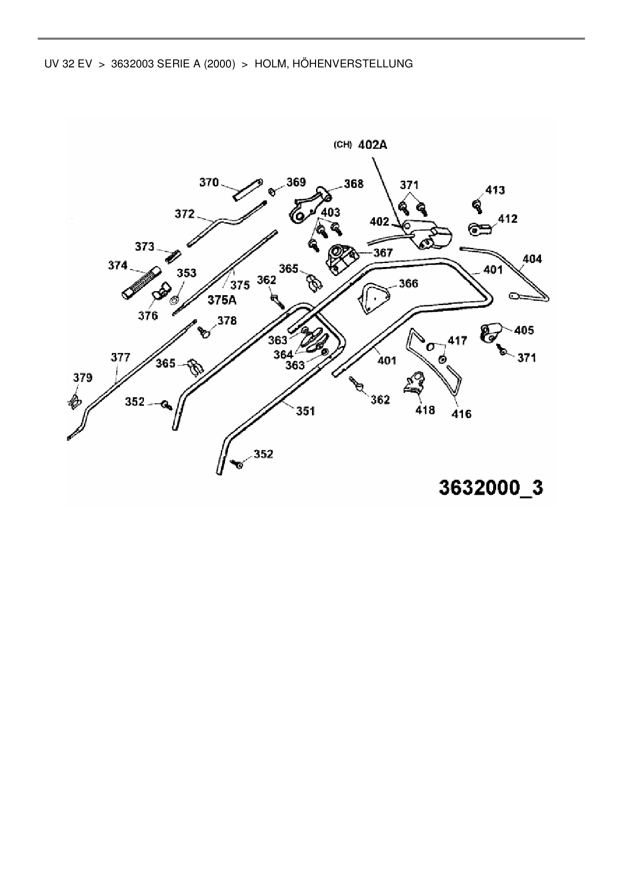 Ersatzteile für Elektrovertikutierer Wolf-Garten UV 32 EV aus der Zeichnung Holm, Höhenverstellung: