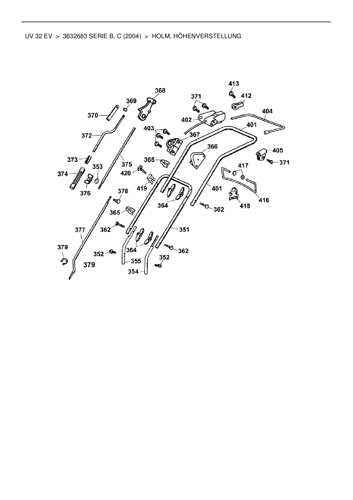 Ersatzteile für Elektrovertikutierer Wolf-Garten UV 32 EV aus der Zeichnung Holm, Höhenverstellung:
