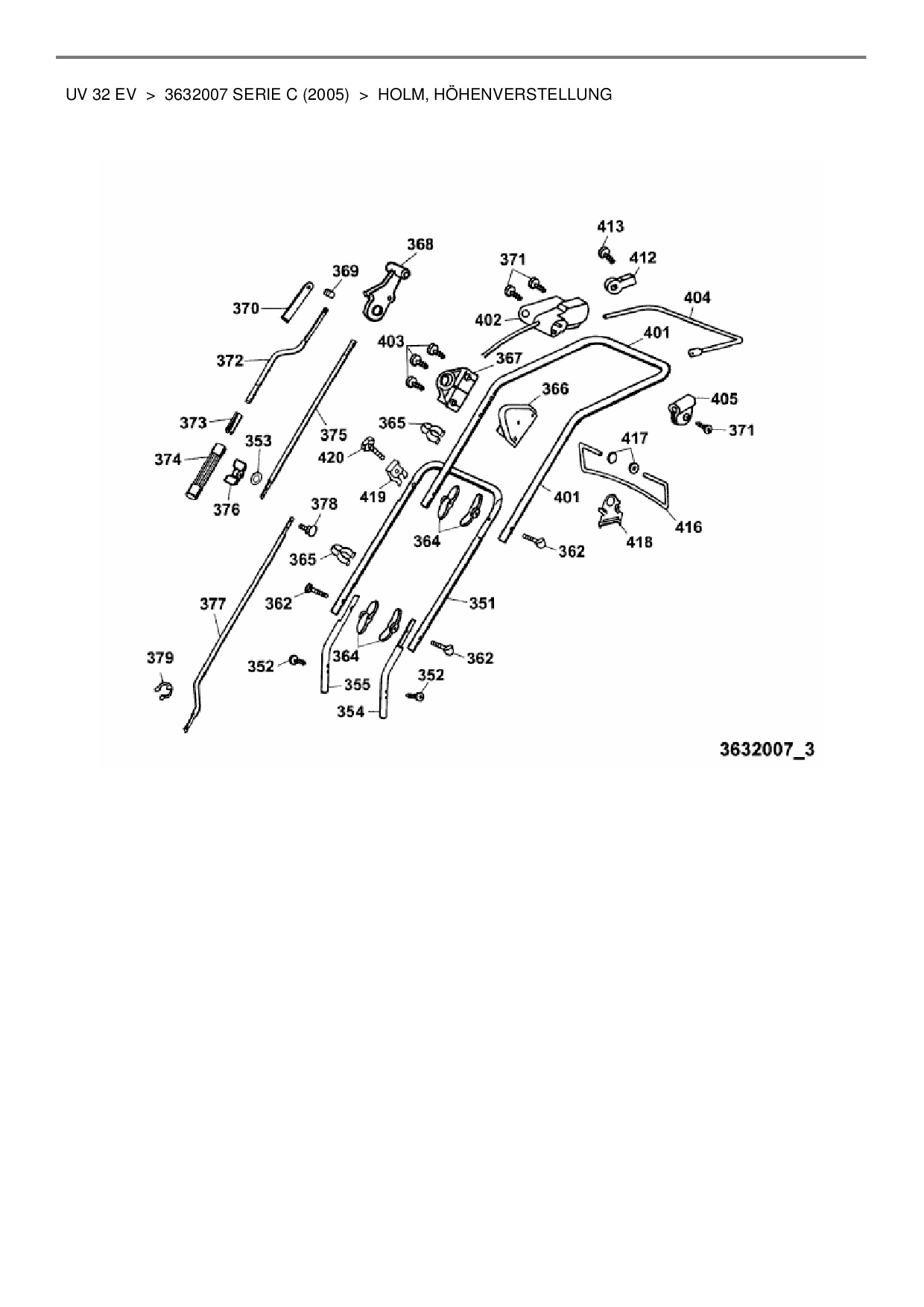 Download Ersatzteil-Zeichnung Wolf-Garten UV 32 EV Zeichnung Holm, Höhenverstellung (PDF-Format)