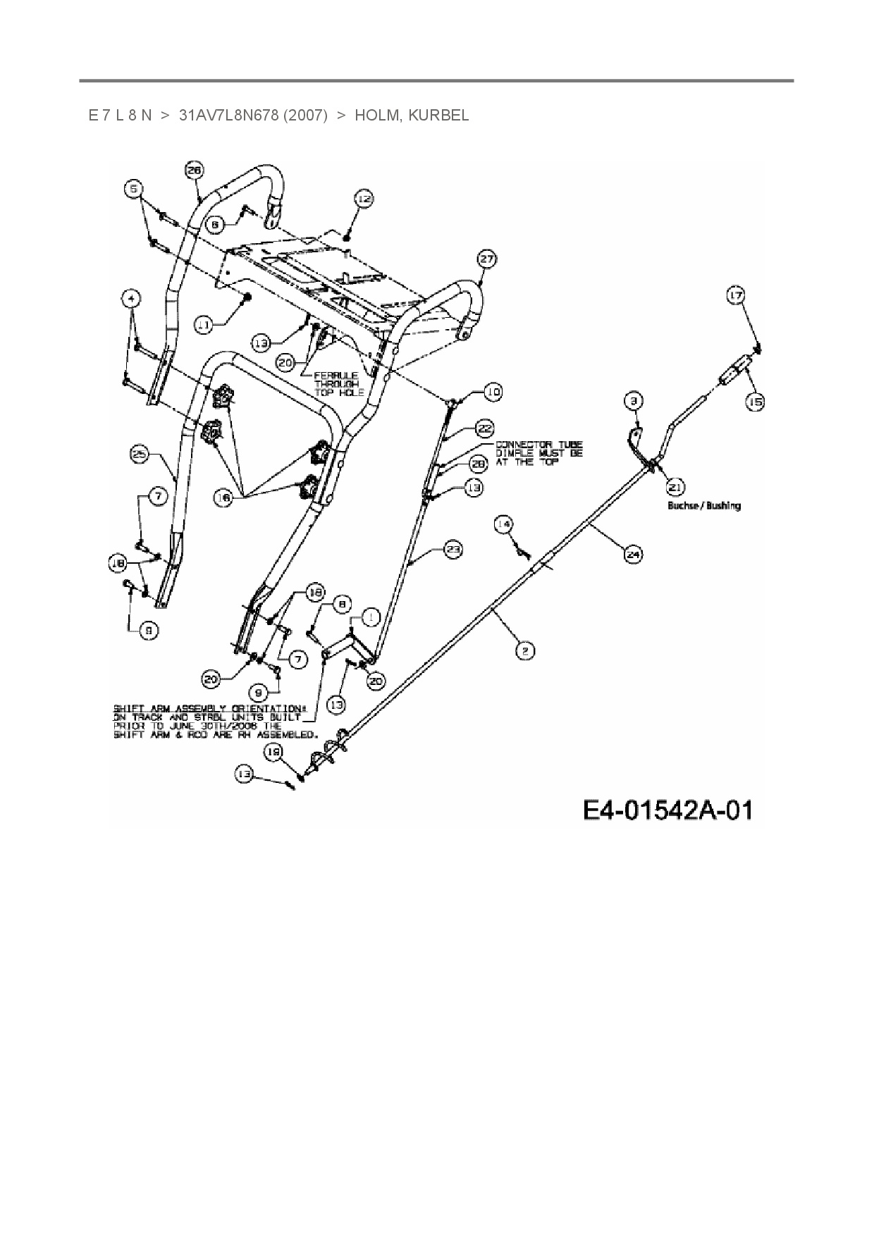 Ersatzteile für Schneefräse MTD E 7 L 8 N aus der Zeichnung Holm, Kurbel: