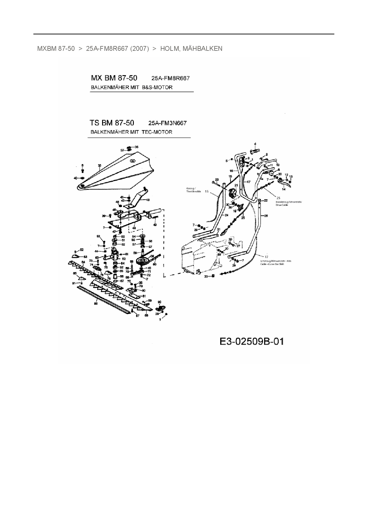 Ersatzteile für Balkenmäher Merox MXBM 87-50 aus der Zeichnung Holm, Mähbalken: