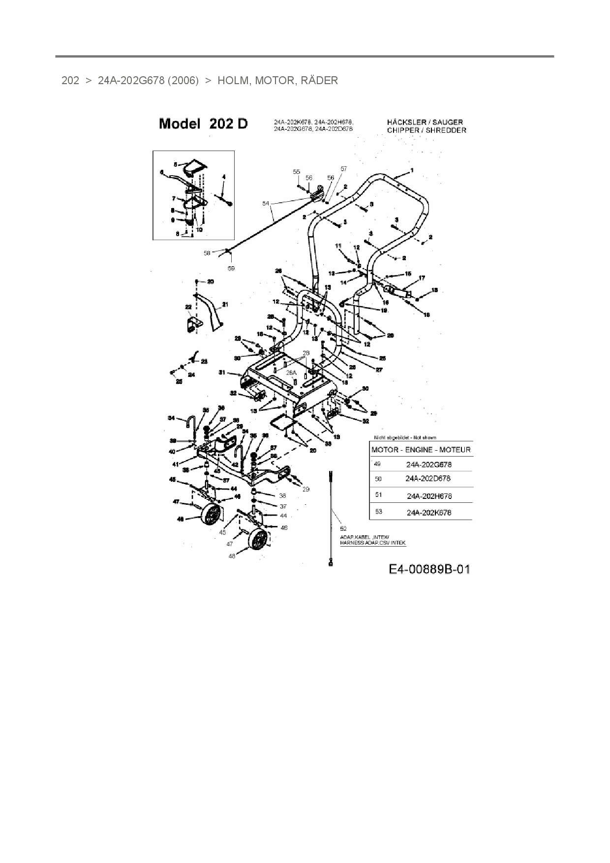 Ersatzteile für Laubsauger mit Häckselfunktion MTD 202 aus der Zeichnung Holm, Motor, Räder: