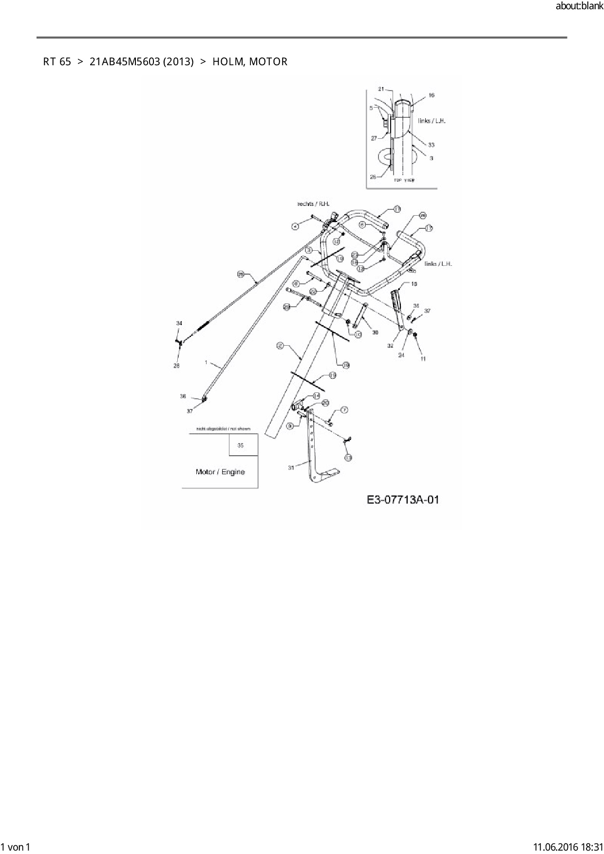 Ersatzteile für Motorhacke Cub Cadet RT 65 aus der Zeichnung Holm, Motor: