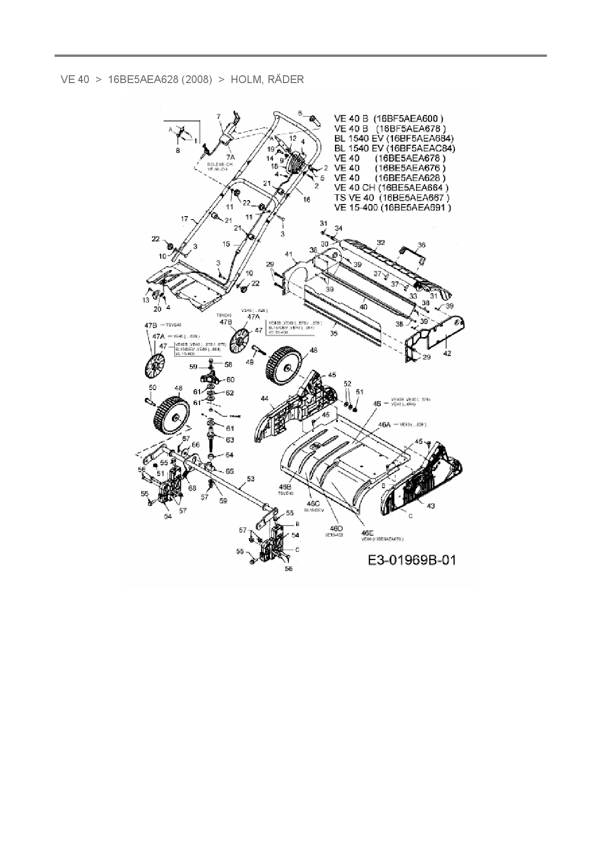 Ersatzteile für Elektrovertikutierer Raiffeisen VE 40 aus der Zeichnung Holm, Räder:
