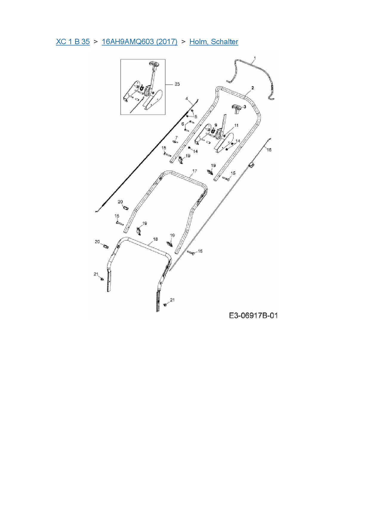 Ersatzteile für Motorvertikutierer Cub Cadet XC 1 B 35 aus der Zeichnung Holm, Schalter: