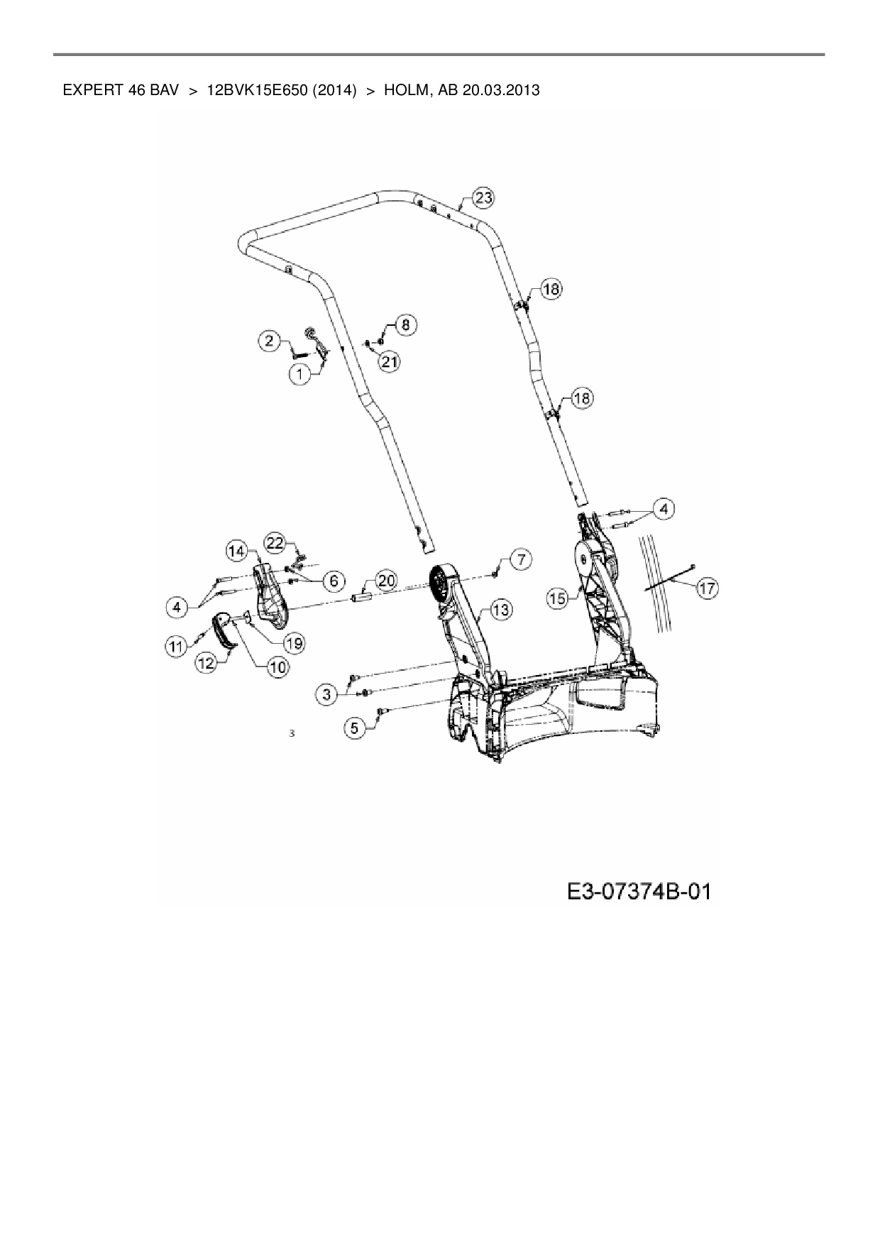 Ersatzteile für Motormäher mit Antrieb Wolf-Garten Expert Expert 46 BAV aus der Zeichnung Holm, ab 20.03.2013: