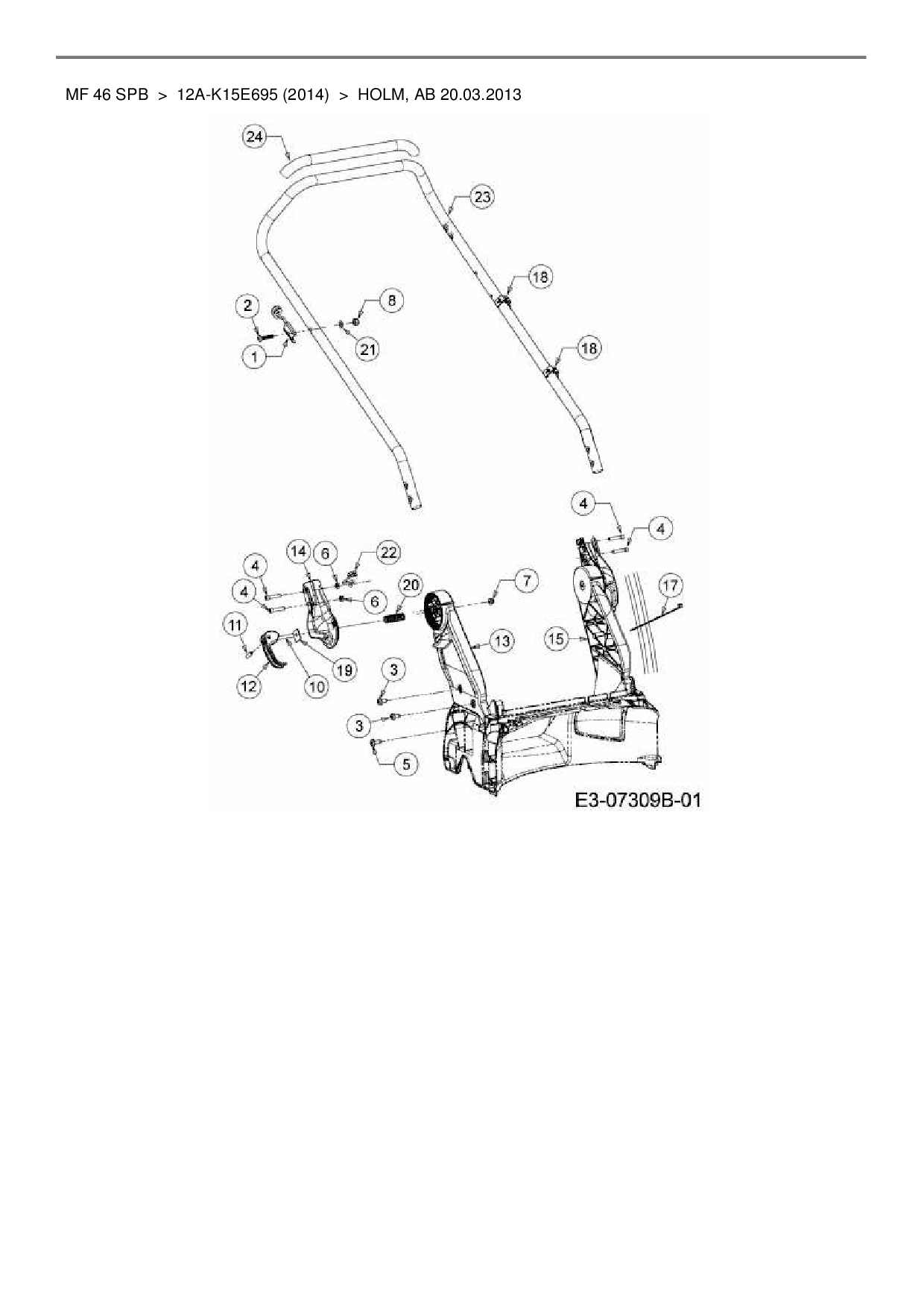Ersatzteile für Motormäher mit Antrieb Massey Ferguson MF 46 SPB aus der Zeichnung Holm, ab 20.03.2013: