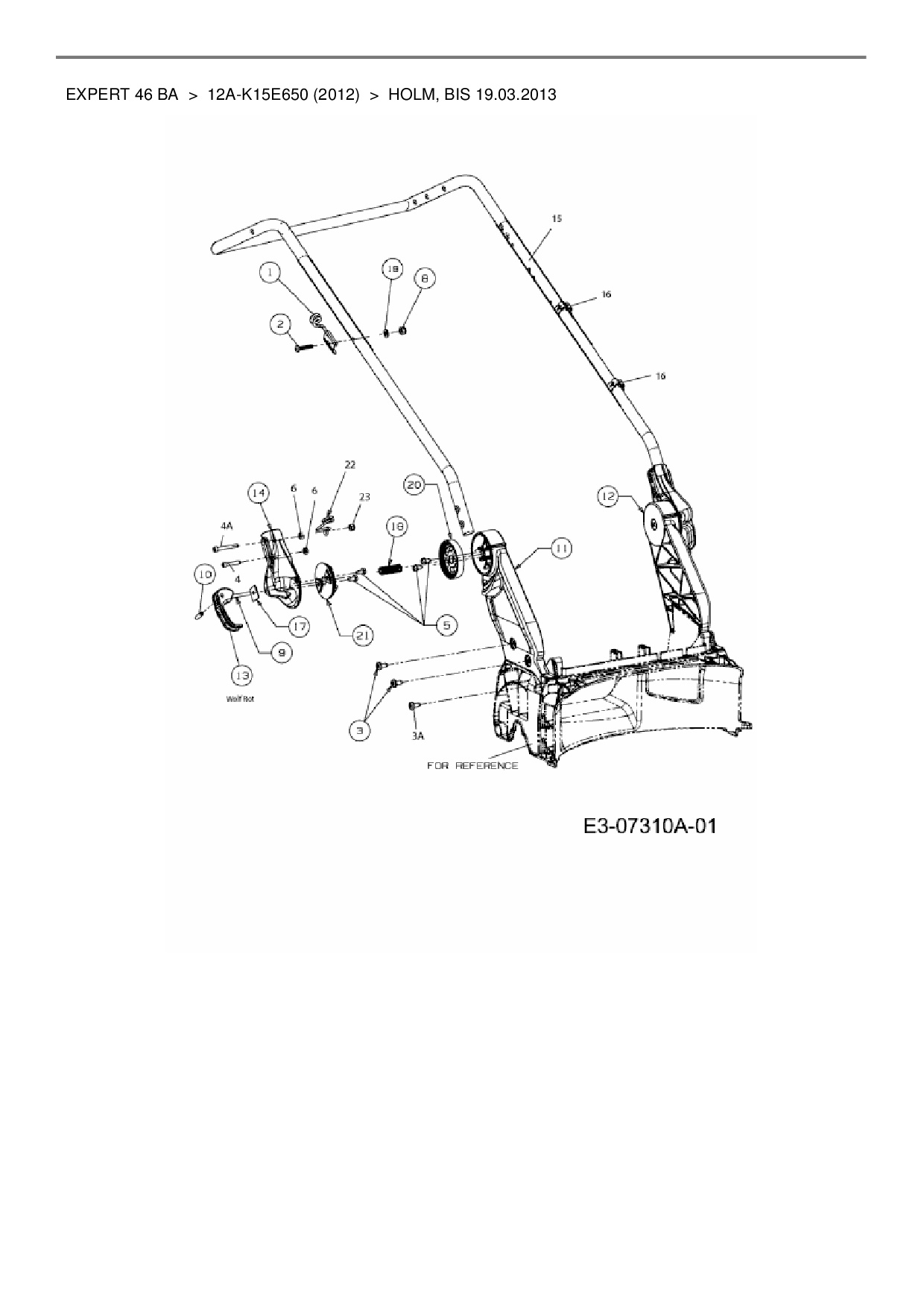 Ersatzteile für Motormäher mit Antrieb Wolf-Garten Expert Expert 46 BA aus der Zeichnung Holm, bis 19.03.2013: