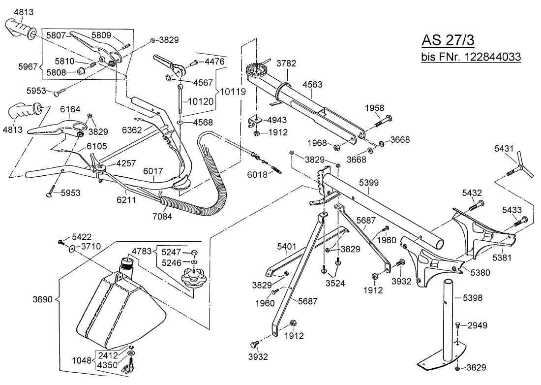 Hier finden Sie alle Ersatzteile von AS-Motor Allmäher AS 27/3 ab FNr. 0122644001 aus dem Zeichnungsblatt Holm bis FNr.122844033: