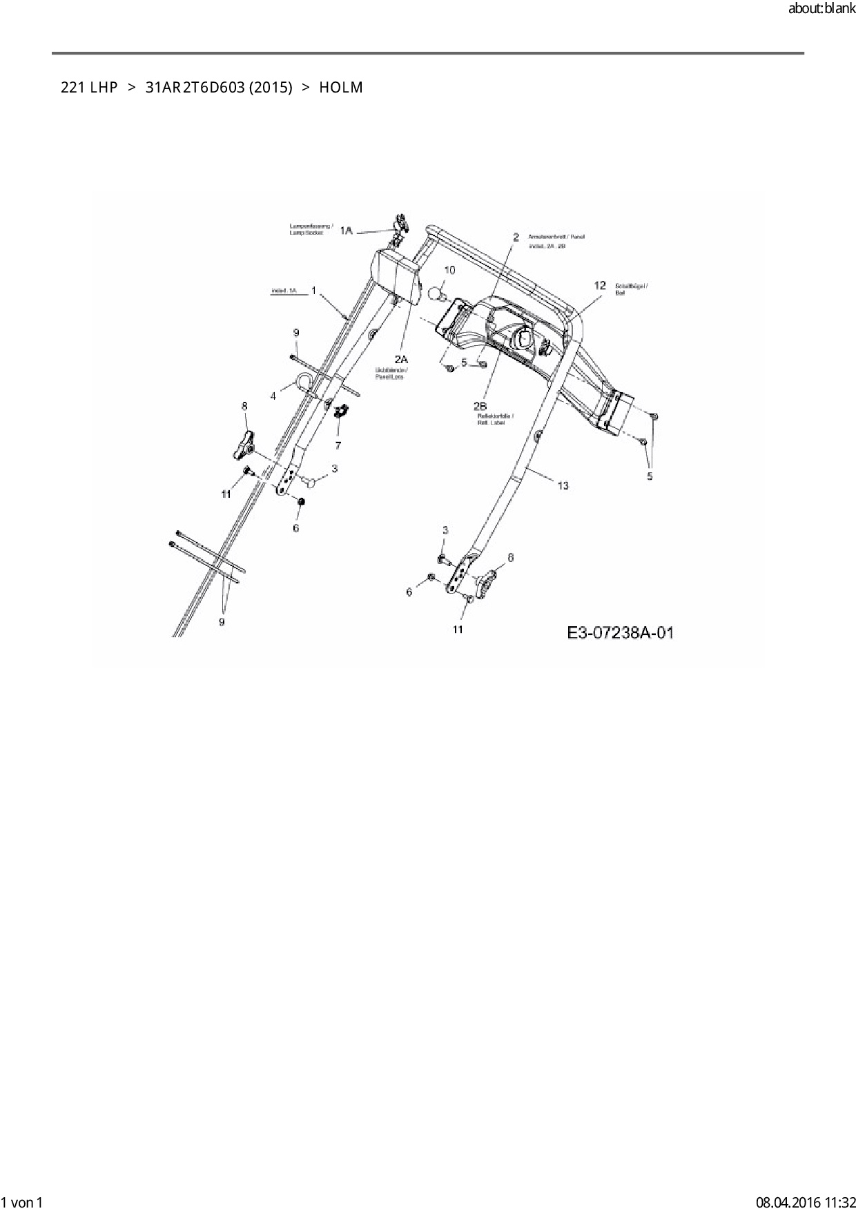 Ersatzteile für Schneefräse Cub Cadet 221 LHP aus der Zeichnung Holm: