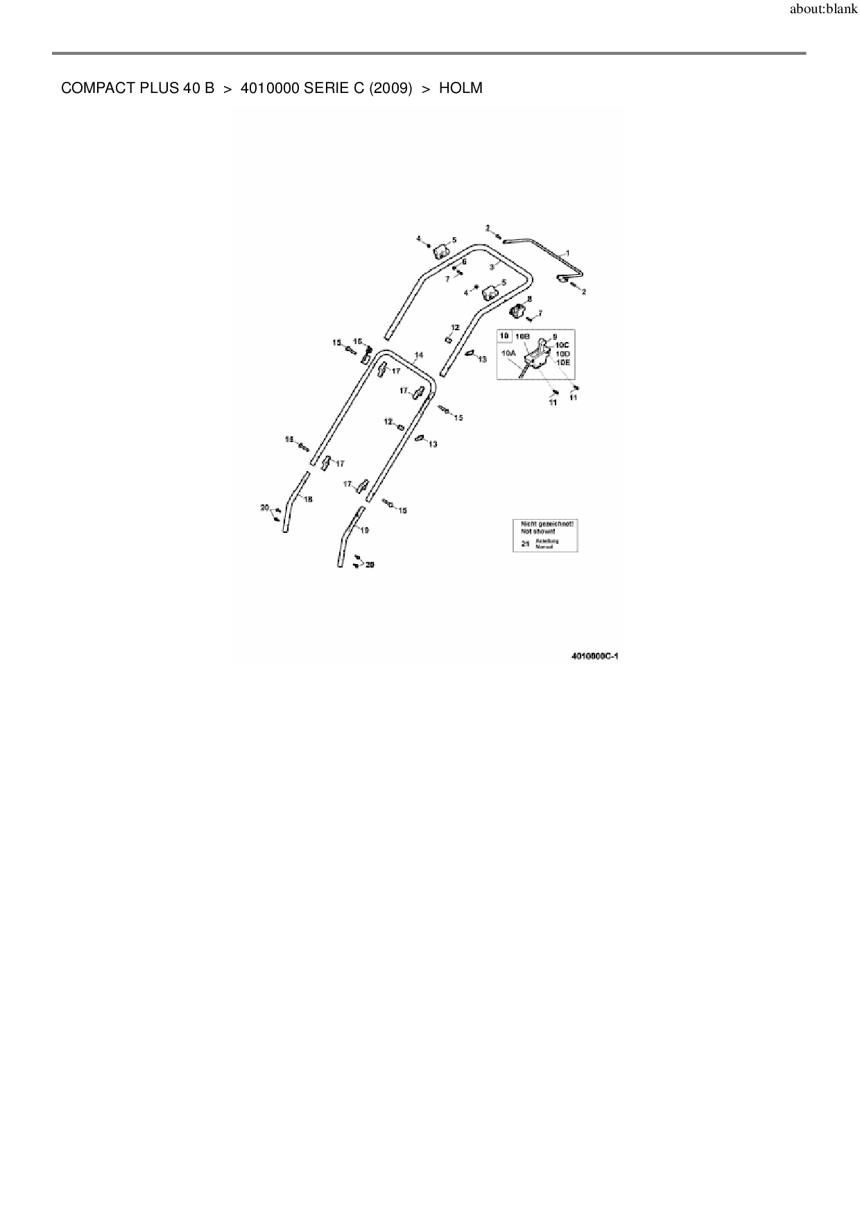 Zeichnung für Wolf-Garten Motormäher Compact plus 40 B mit der Geräte-Artikelnr. 4010000 Serie C ab Baujahr 2009: