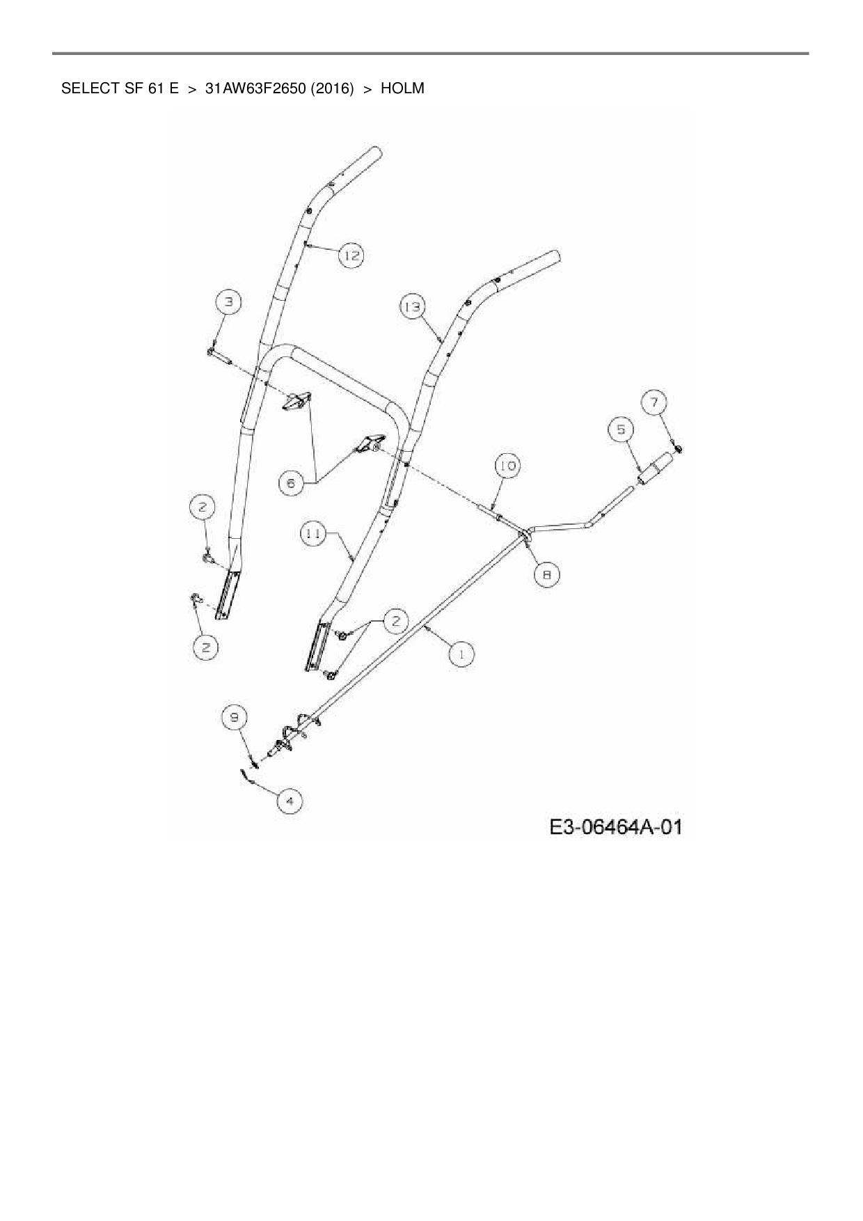 Download Ersatzteil-Zeichnung Wolf-Garten Select SF 61 E Zeichnung Holm (PDF-Format)