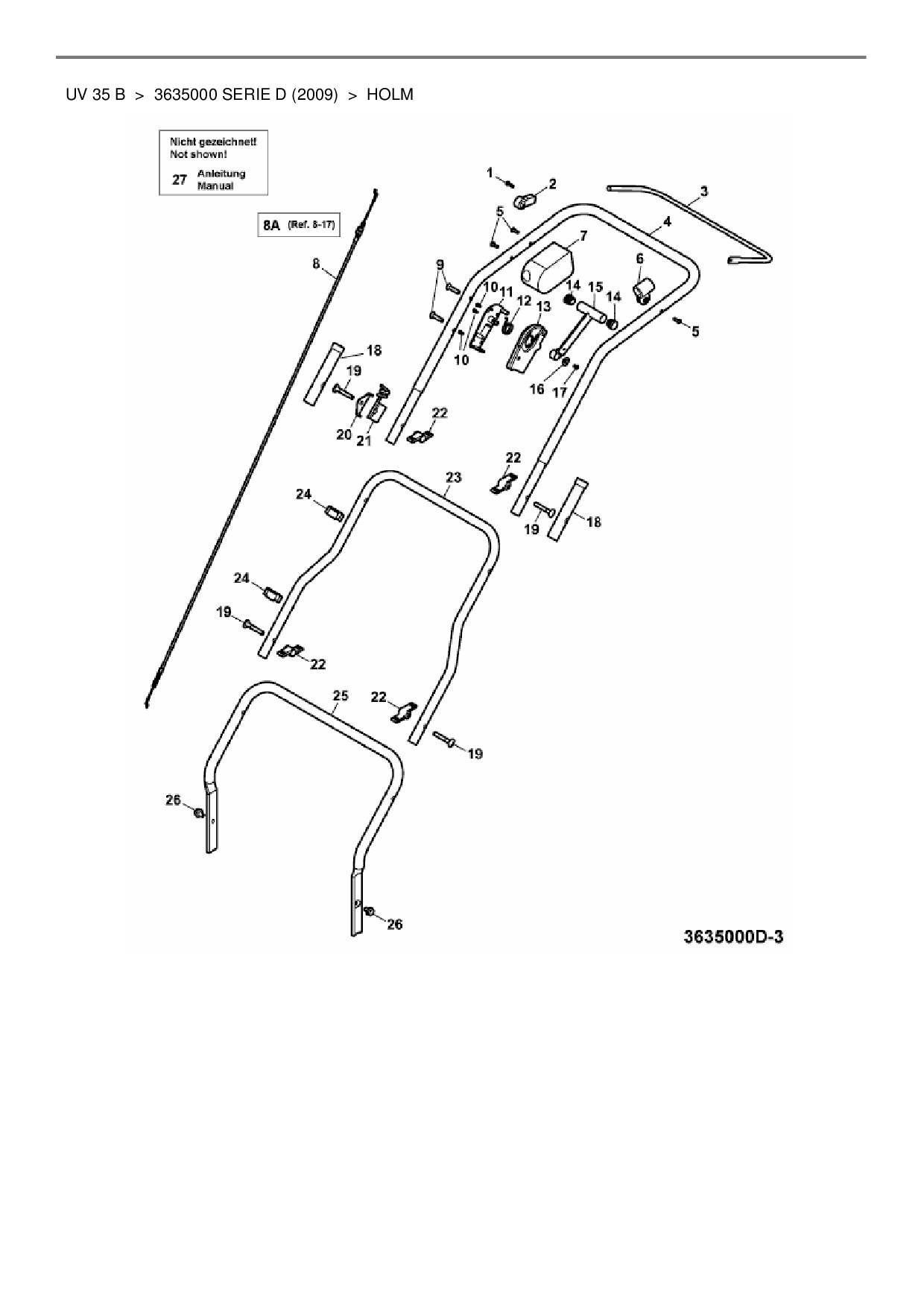 Zeichnung für Wolf-Garten Motorvertikutierer UV 35 B mit der Geräte-Artikelnr. 3635000 Serie D ab Baujahr 2009: