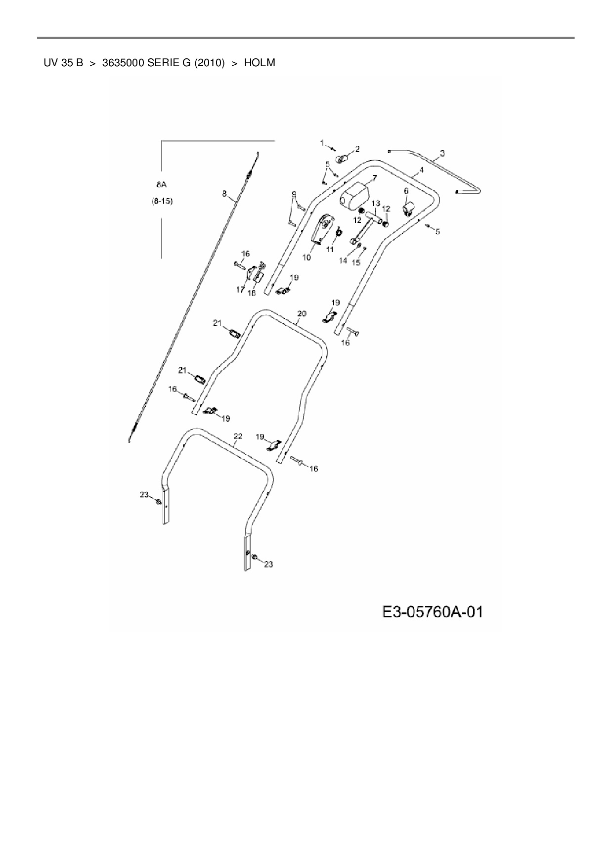 Ersatzteile für Motorvertikutierer Wolf-Garten UV 35 B aus der Zeichnung Holm: