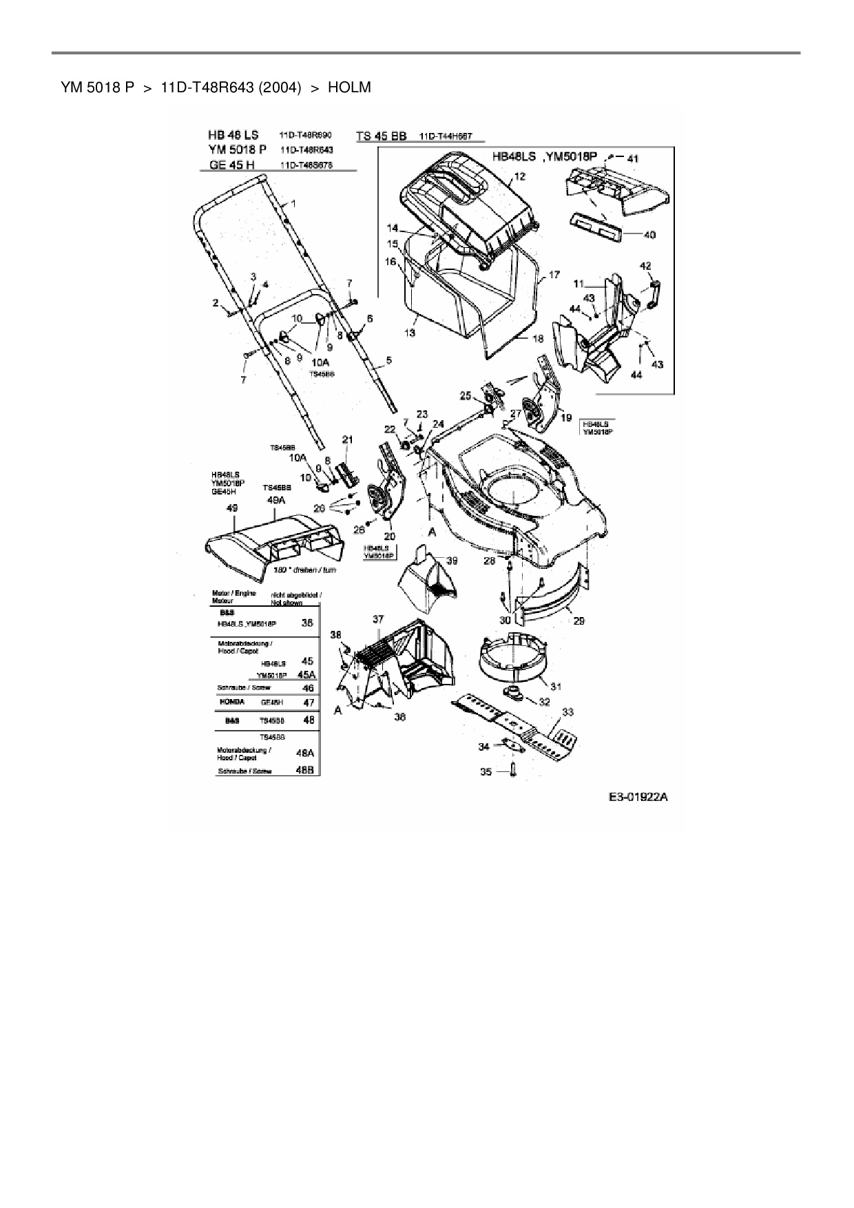 Ersatzteile für Motormäher Yard-Man YM 5018 P aus der Zeichnung Holm: