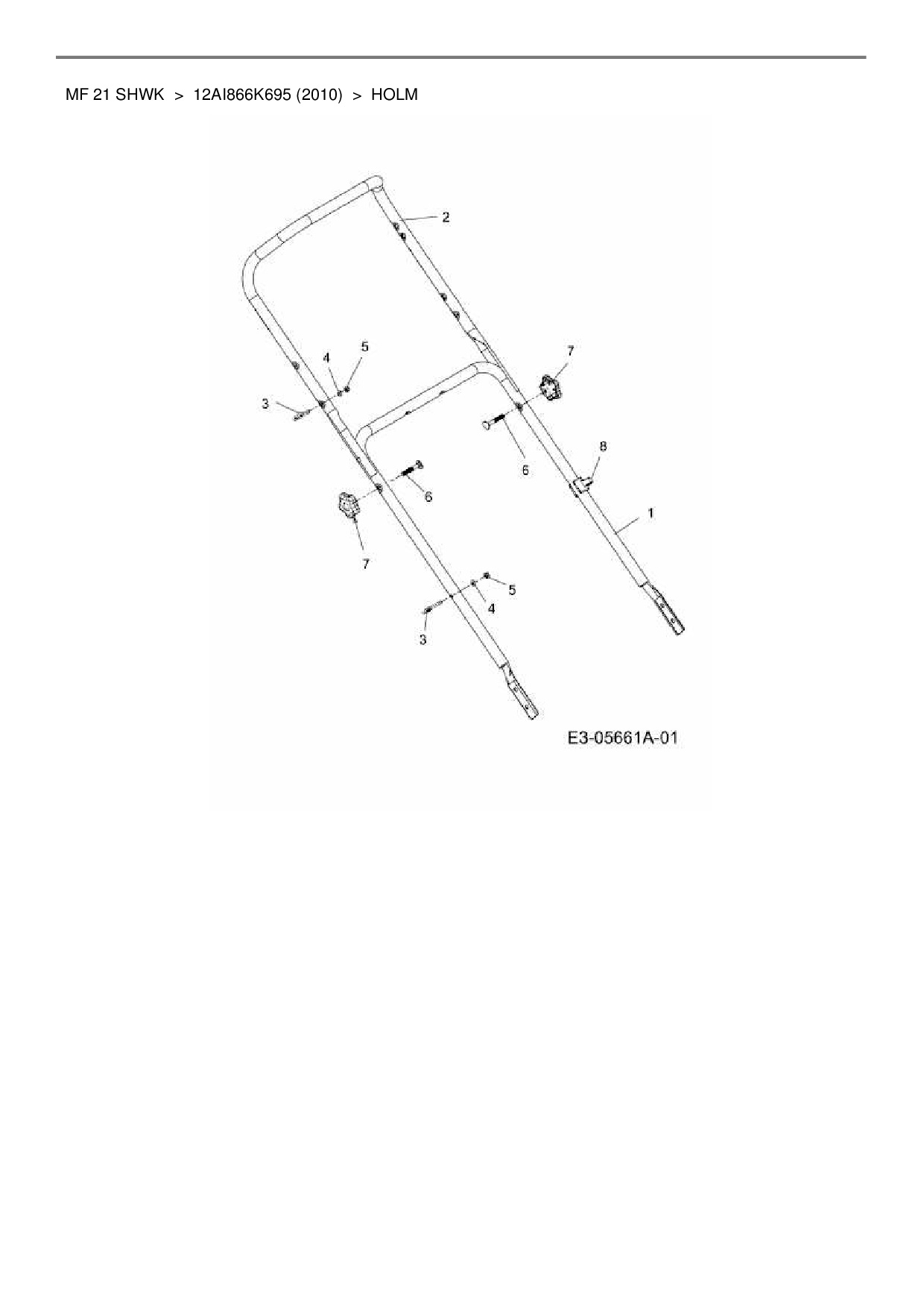 Ersatzteile für Motormäher mit Antrieb Massey Ferguson MF 21 SHWK aus der Zeichnung Holm: