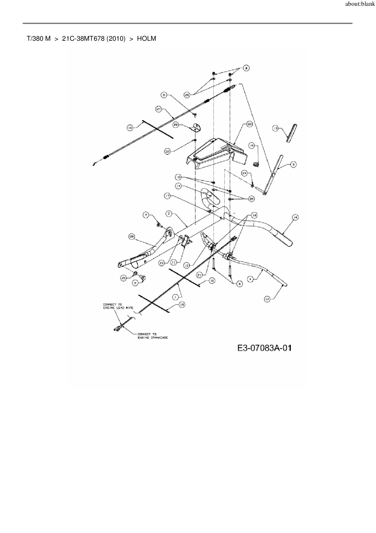 Ersatzteile für Motorhacke MTD T/380 M aus der Zeichnung Holm: