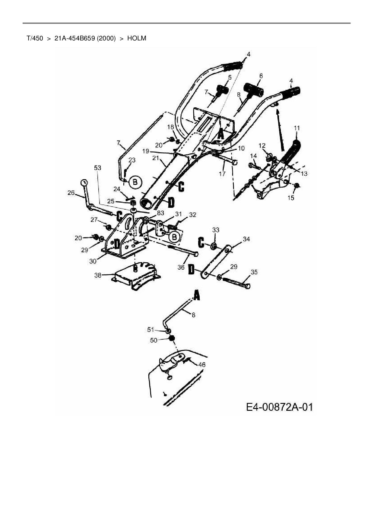 Zeichnung für Mastercut Motorhacke T/450 mit der Geräte-Artikelnr. 21A-454B659 ab Baujahr 2000:
