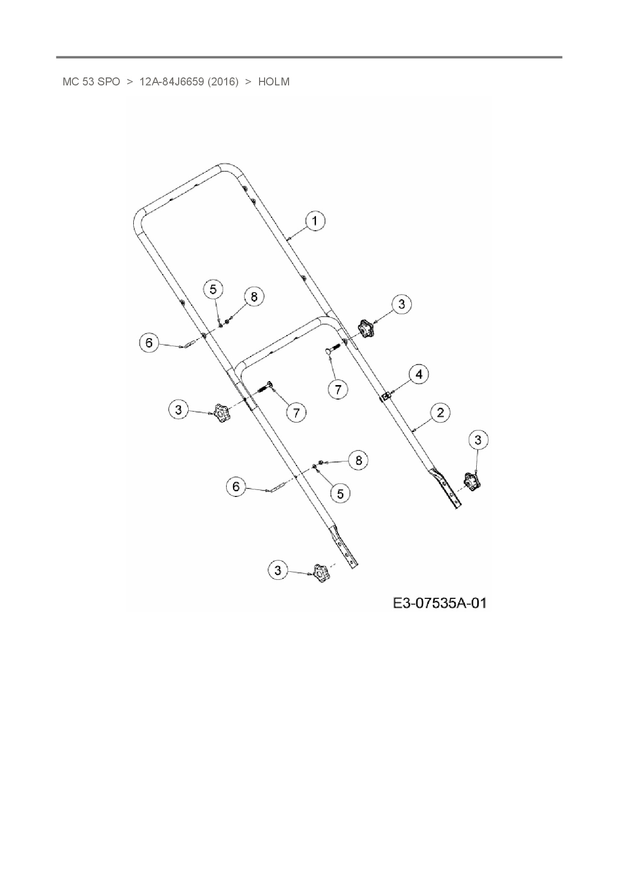 Ersatzteile für Motormäher mit Antrieb Mastercut MC 53 SPO aus der Zeichnung Holm: