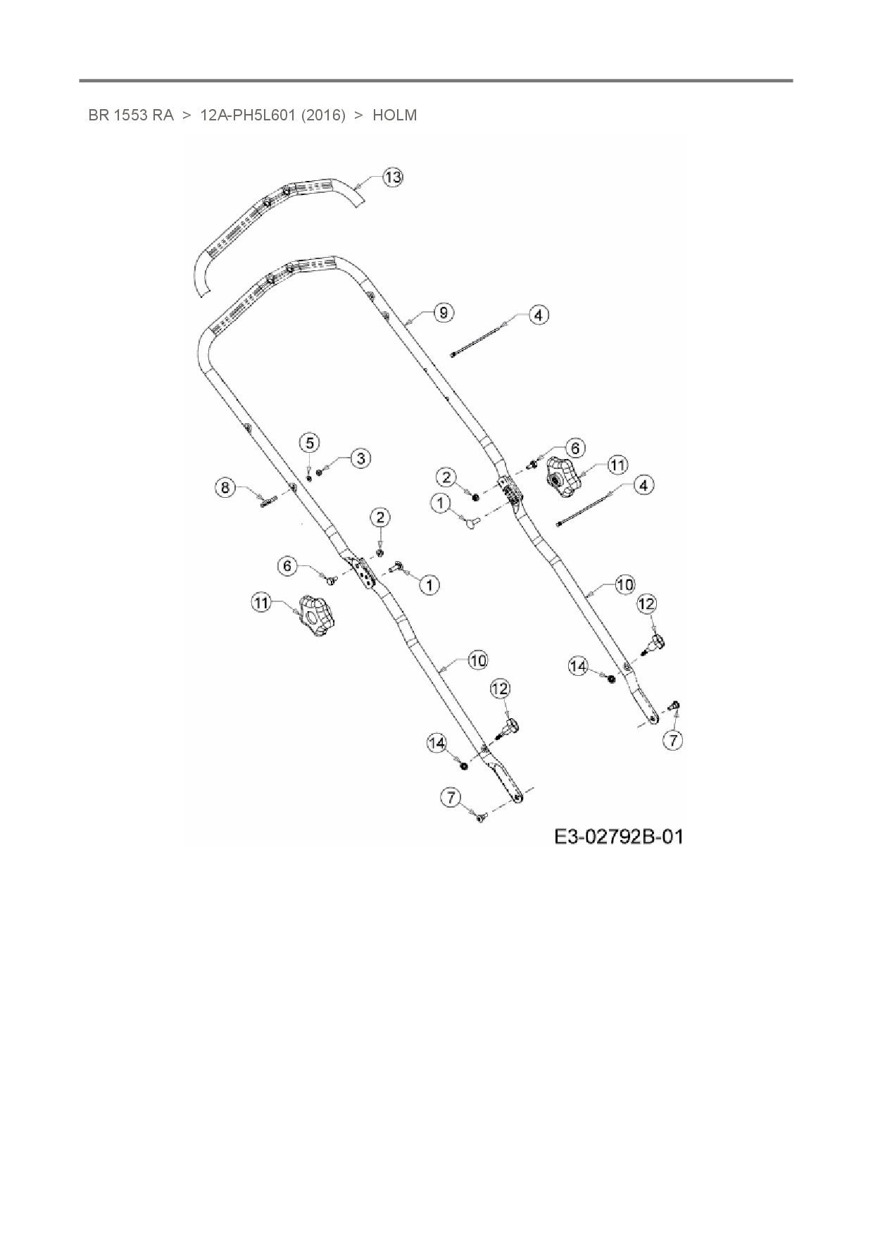 Ersatzteile für Motormäher mit Antrieb Wingart BR 1553 RA aus der Zeichnung Holm: