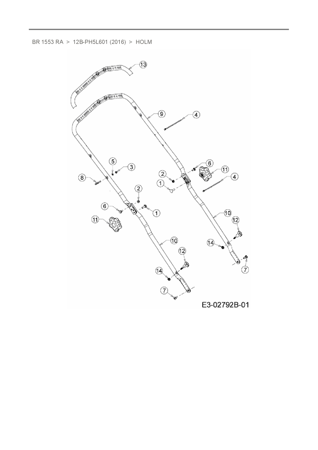 Ersatzteile für Motormäher mit Antrieb Wingart BR 1553 RA aus der Zeichnung Holm: