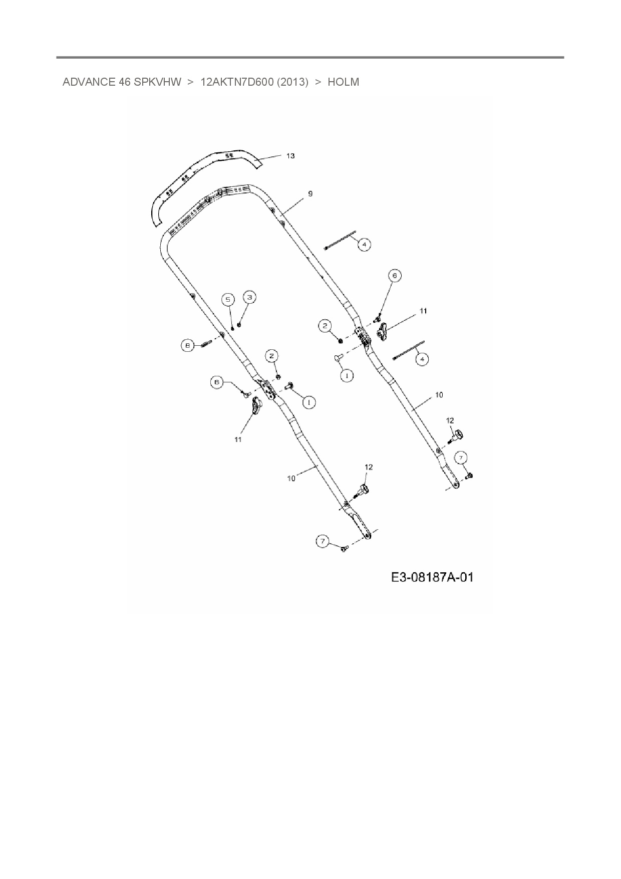 Ersatzteile für Motormäher mit Antrieb MTD Advance 46 SPKVHW aus der Zeichnung Holm: