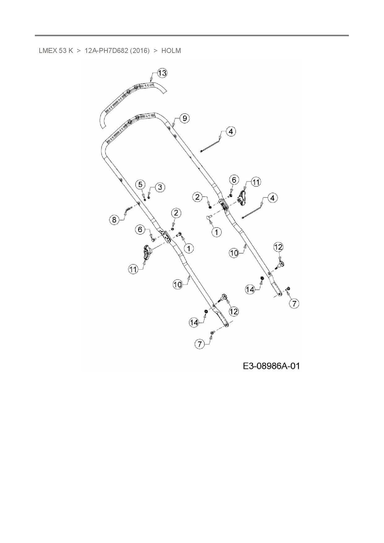 Ersatzteile für Motormäher mit Antrieb MTD LMEX 53 K aus der Zeichnung Holm: