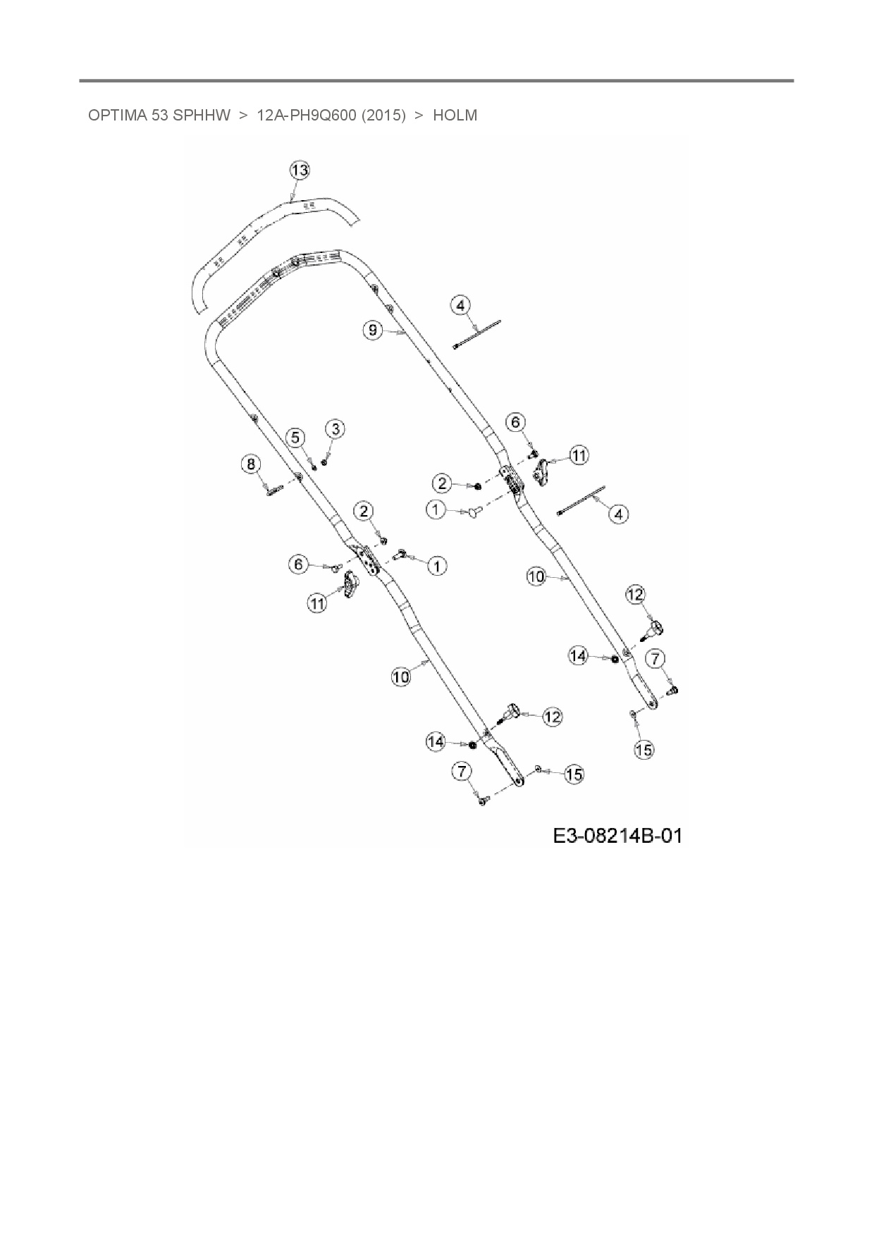 Ersatzteile für Motormäher mit Antrieb MTD Optima 53 SPHHW aus der Zeichnung Holm: