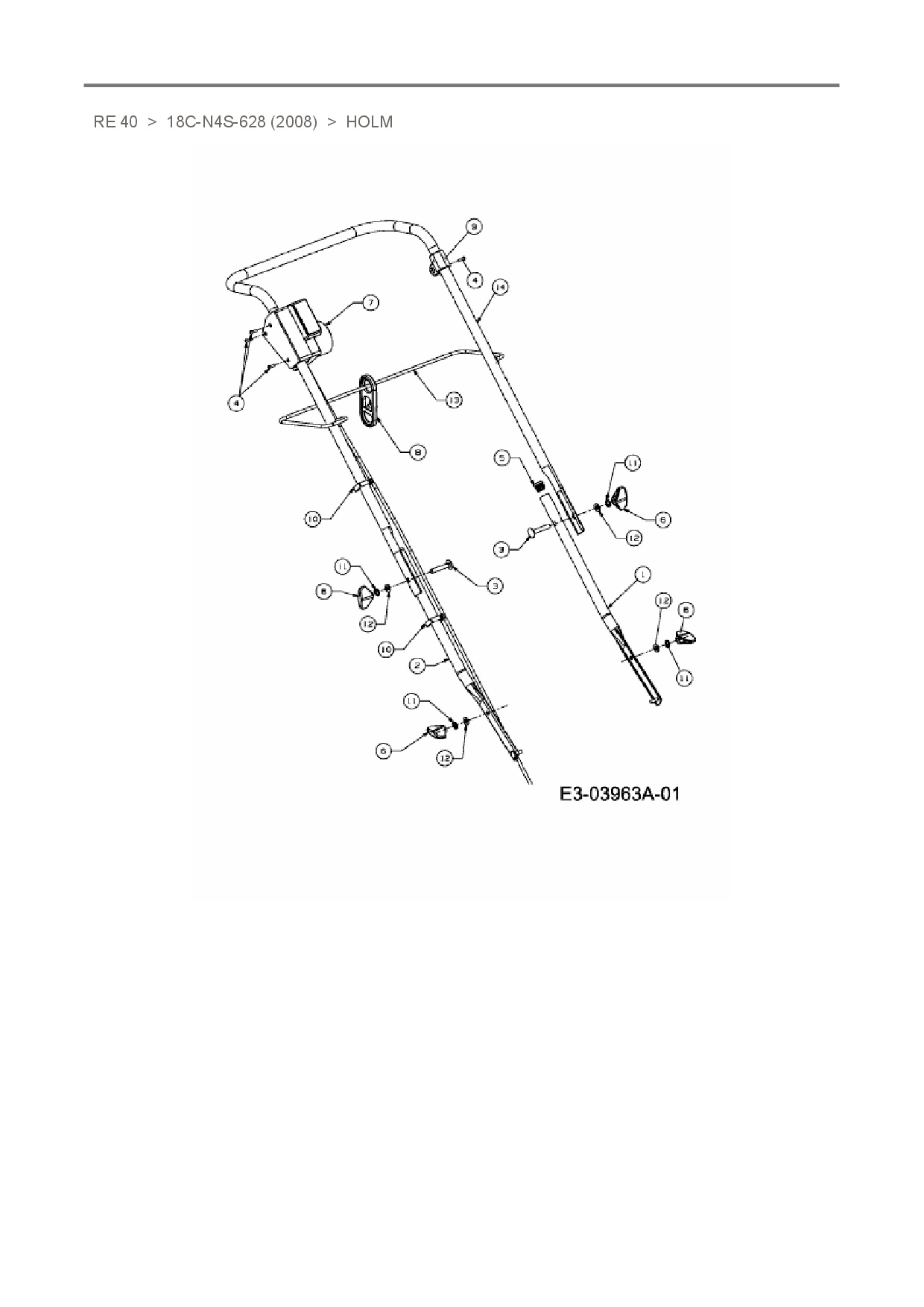 Ersatzteile für Elektromäher Raiffeisen RE 40 aus der Zeichnung Holm: