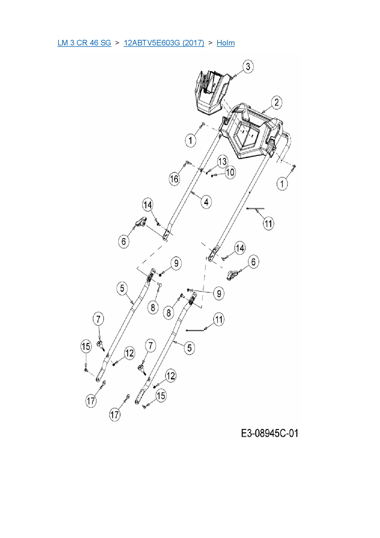 Ersatzteile für Motormäher mit Antrieb Cub Cadet LM 3 CR 46 SG aus der Zeichnung Holm:
