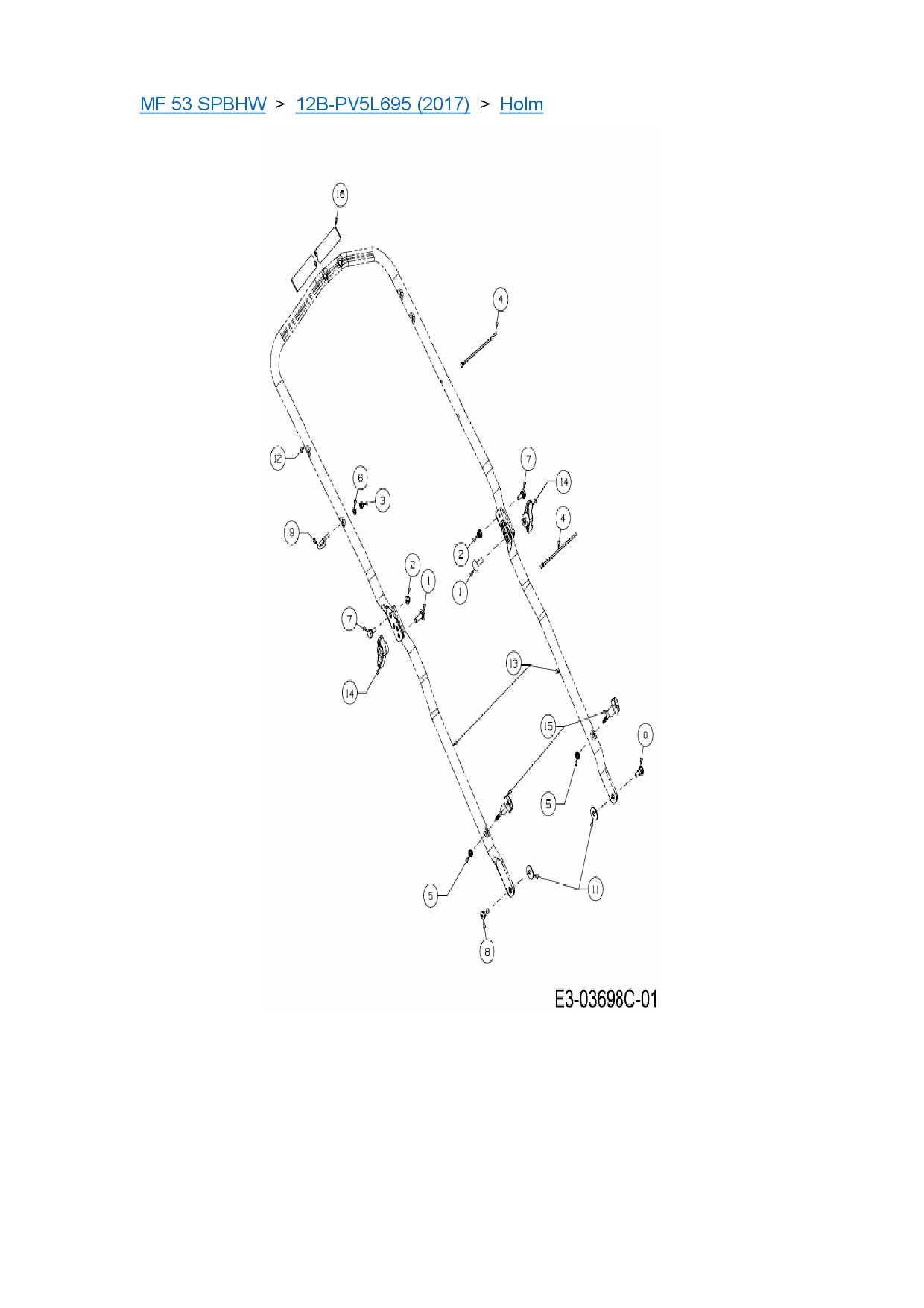 Ersatzteile für Motormäher mit Antrieb Massey Ferguson MF 53 SPBHW aus der Zeichnung Holm: