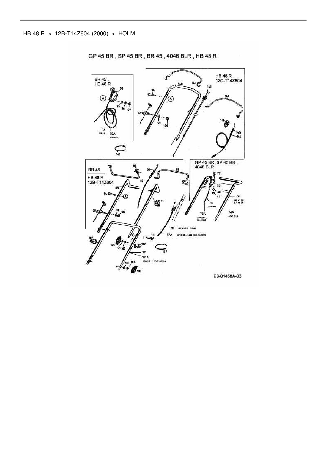Ersatzteile für Motormäher mit Antrieb Gutbrod HB 48 R aus der Zeichnung Holm: