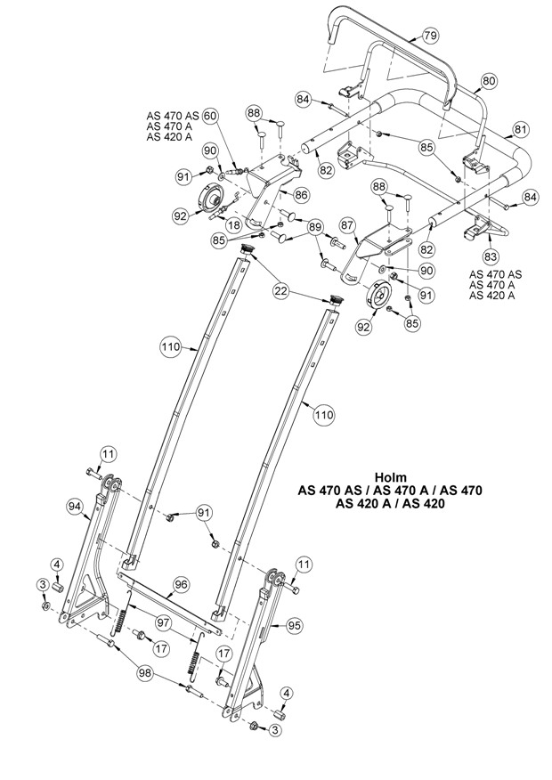Hier finden Sie alle Ersatzteile von AS-Motor Mulch-Rasenmäher AS 420 4T und AS 420 SuperClip ab FNr. 025615010001 aus dem Zeichnungsblatt Holm: