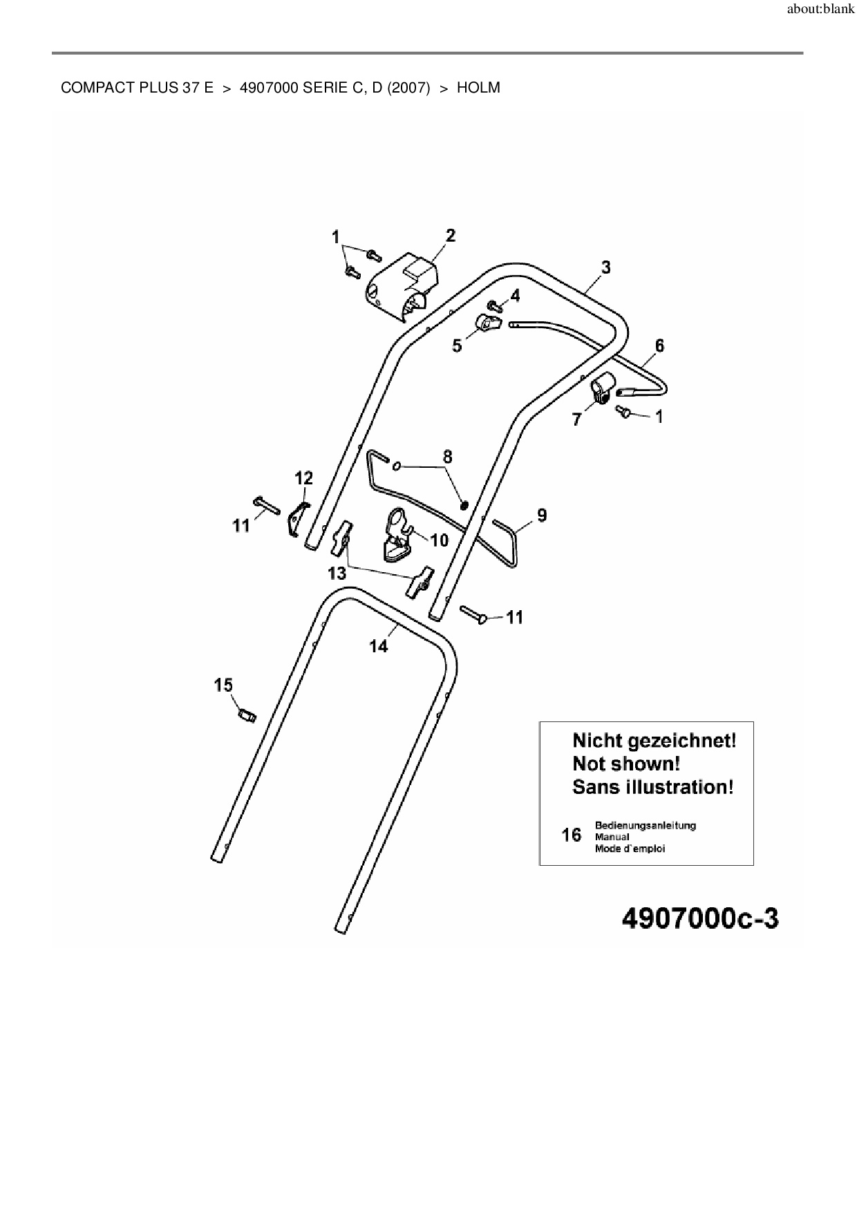 Ersatzteile für Elektromäher Wolf-Garten Compact plus 37 E aus der Zeichnung Holm: