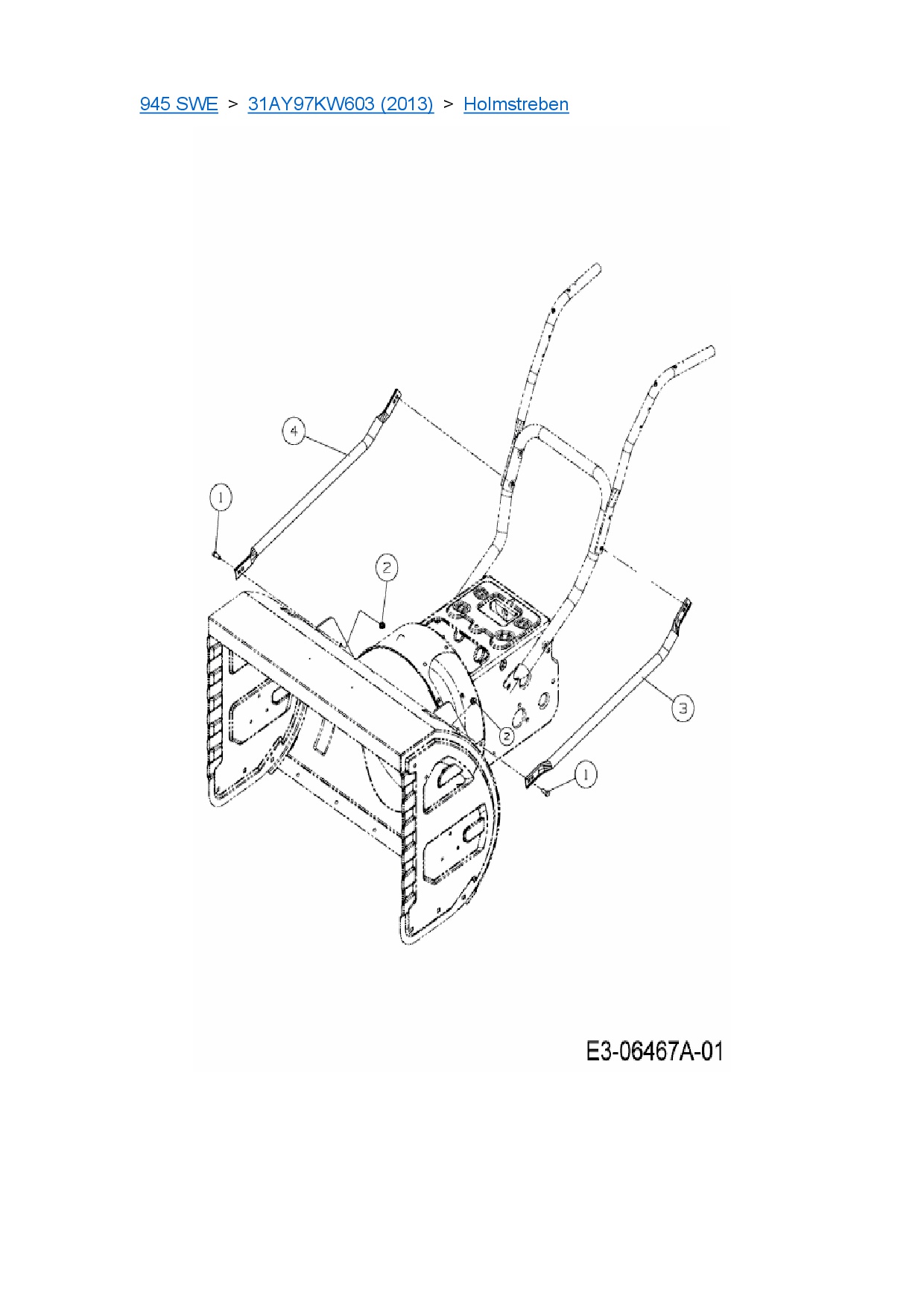 Ersatzteile für Schneefräse Cub Cadet 945 SWE aus der Zeichnung Holmstreben: