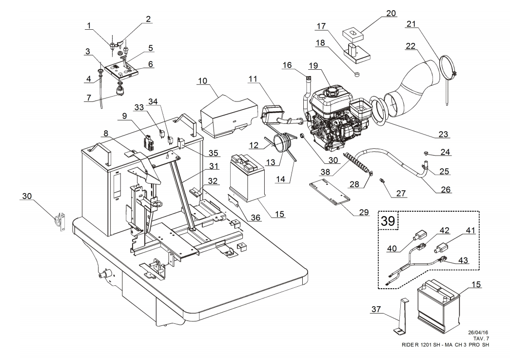 Zeichnung von Erco Kehr- und Saugmaschinen Aufsitz-Kehrsaugmaschinen ER-RIDER-1201HS Honda-Motor: