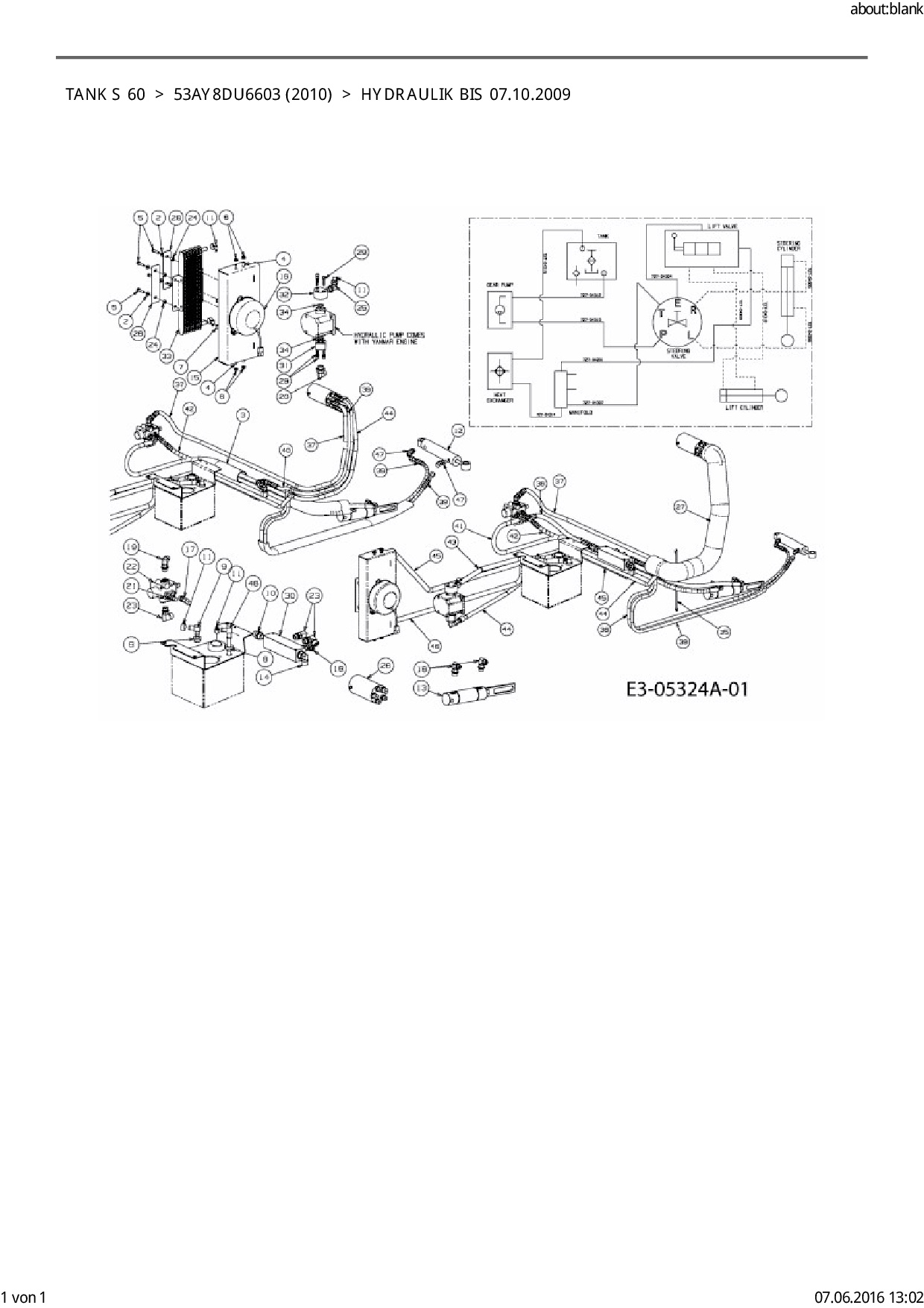 Ersatzteile für Zero Turn Cub Cadet Tank S 60 aus der Zeichnung Hydraulik bis 07.10.2009: