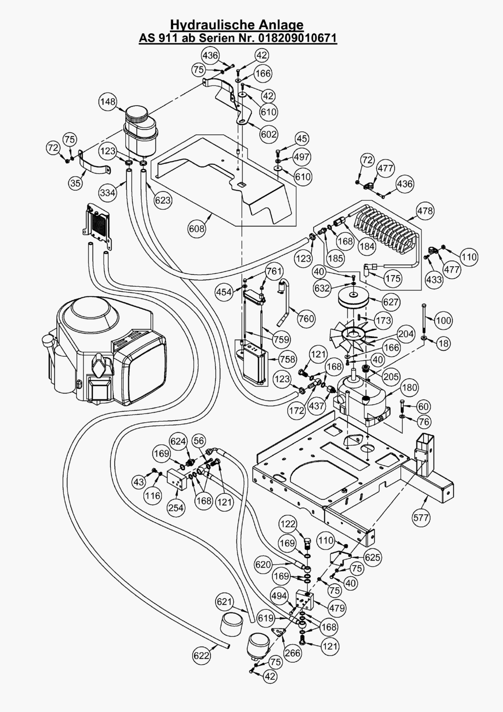 Zeichnung von AS-Motor Aufsitzmäher AS 911, AS 915 Enduro ab FNr. 018209060001: