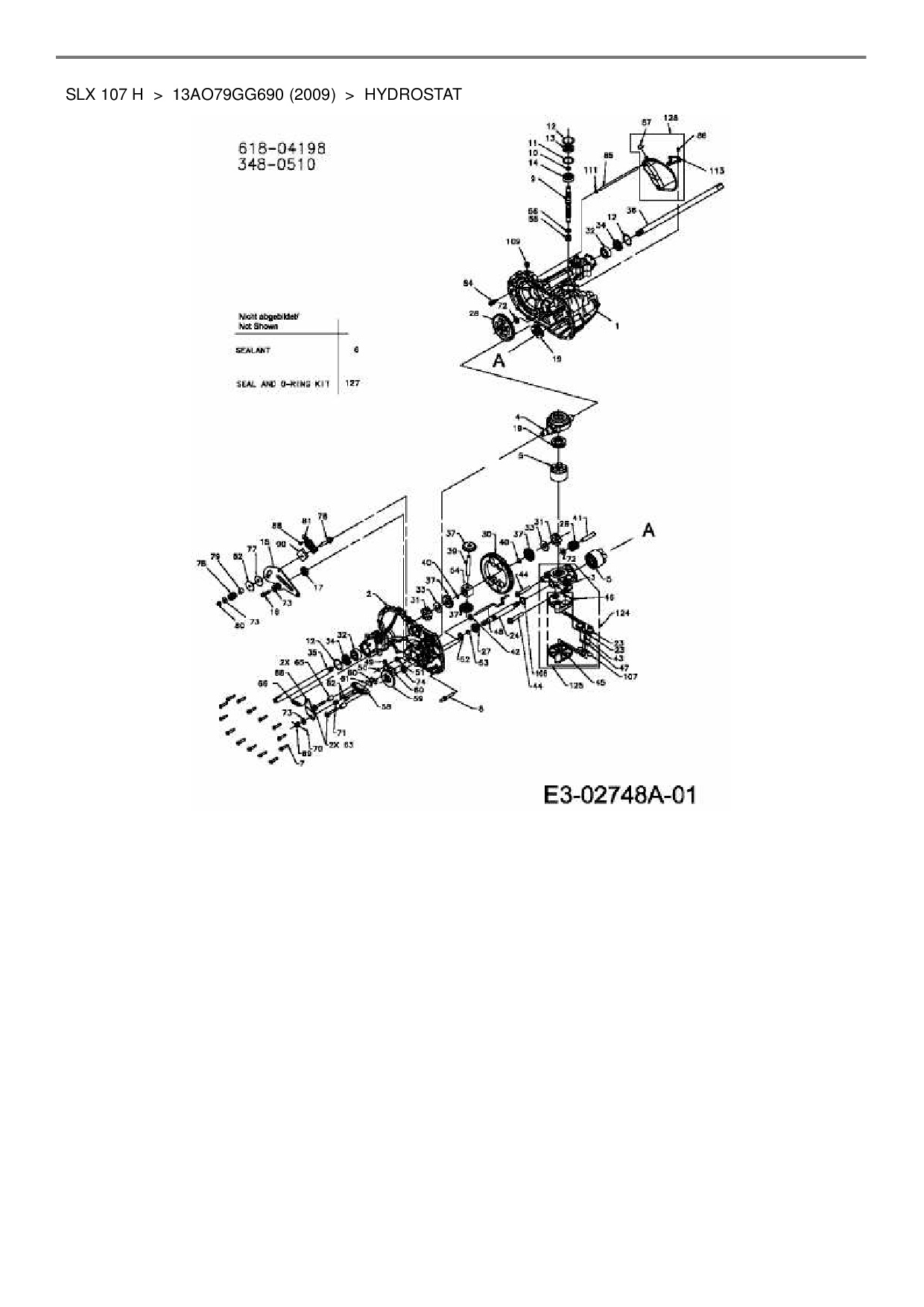 Ersatzteile für Rasentraktor Gutbrod SLX 107 H aus der Zeichnung Hydrostat: