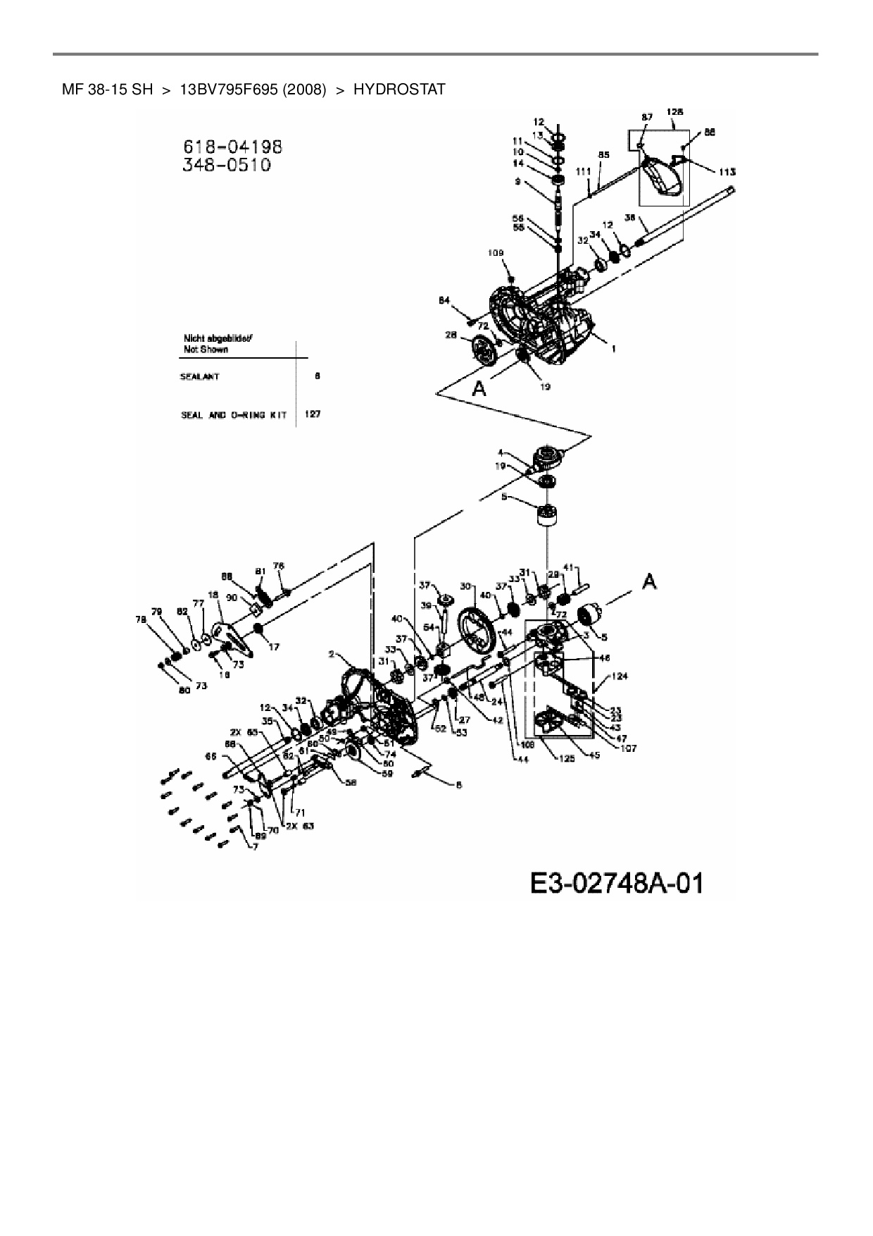Ersatzteile für Rasentraktor Massey Ferguson MF 38-15 SH aus der Zeichnung Hydrostat: