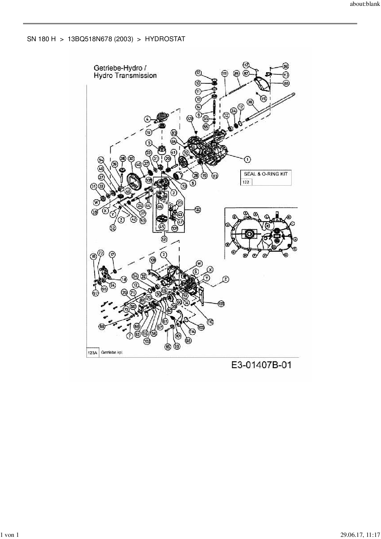 Ersatzteile für Rasentraktor MTD SN 180 H aus der Zeichnung Hydrostat: