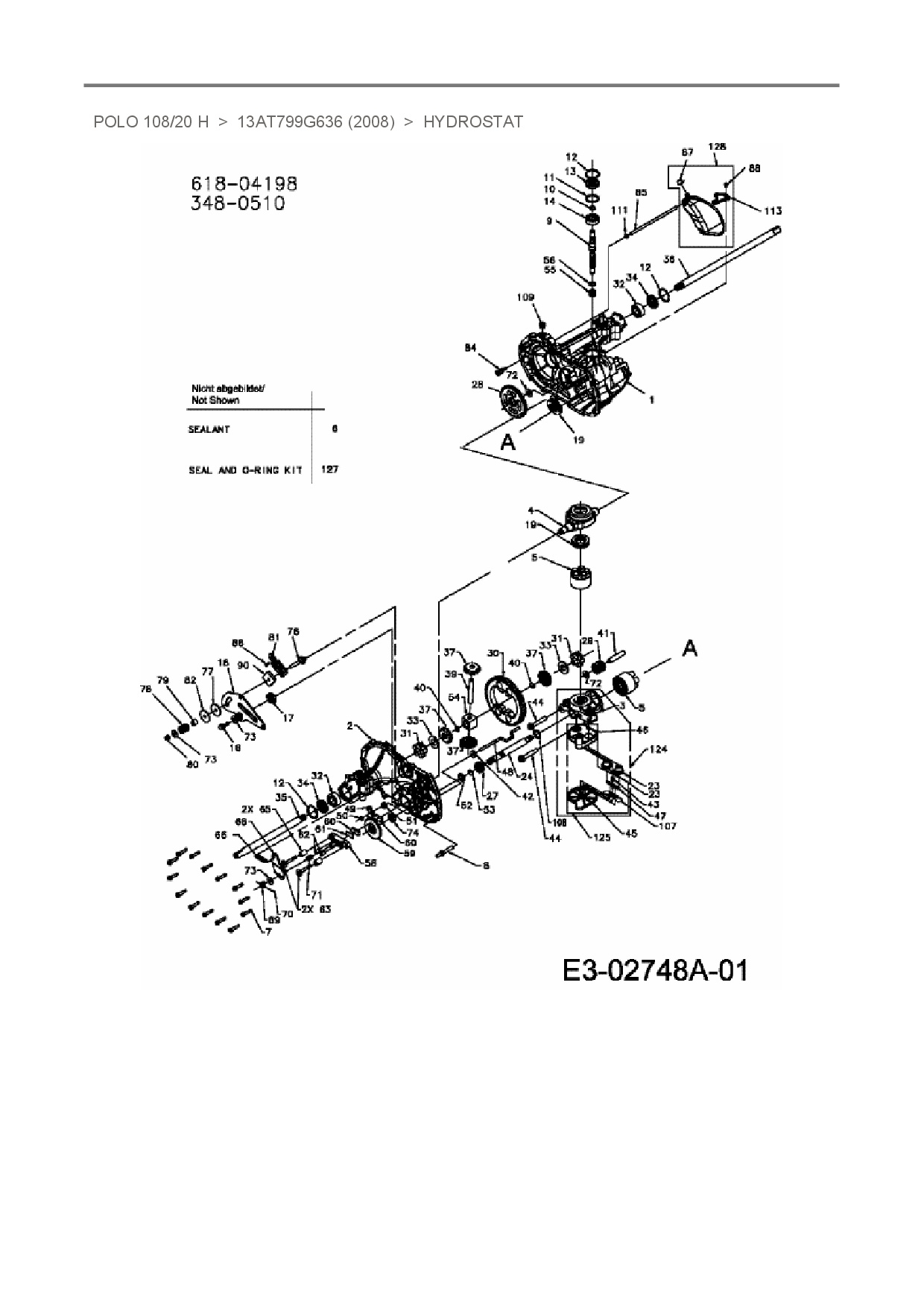 Ersatzteile für Rasentraktor Oleo-Mac Polo 108/20 H aus der Zeichnung Hydrostat: