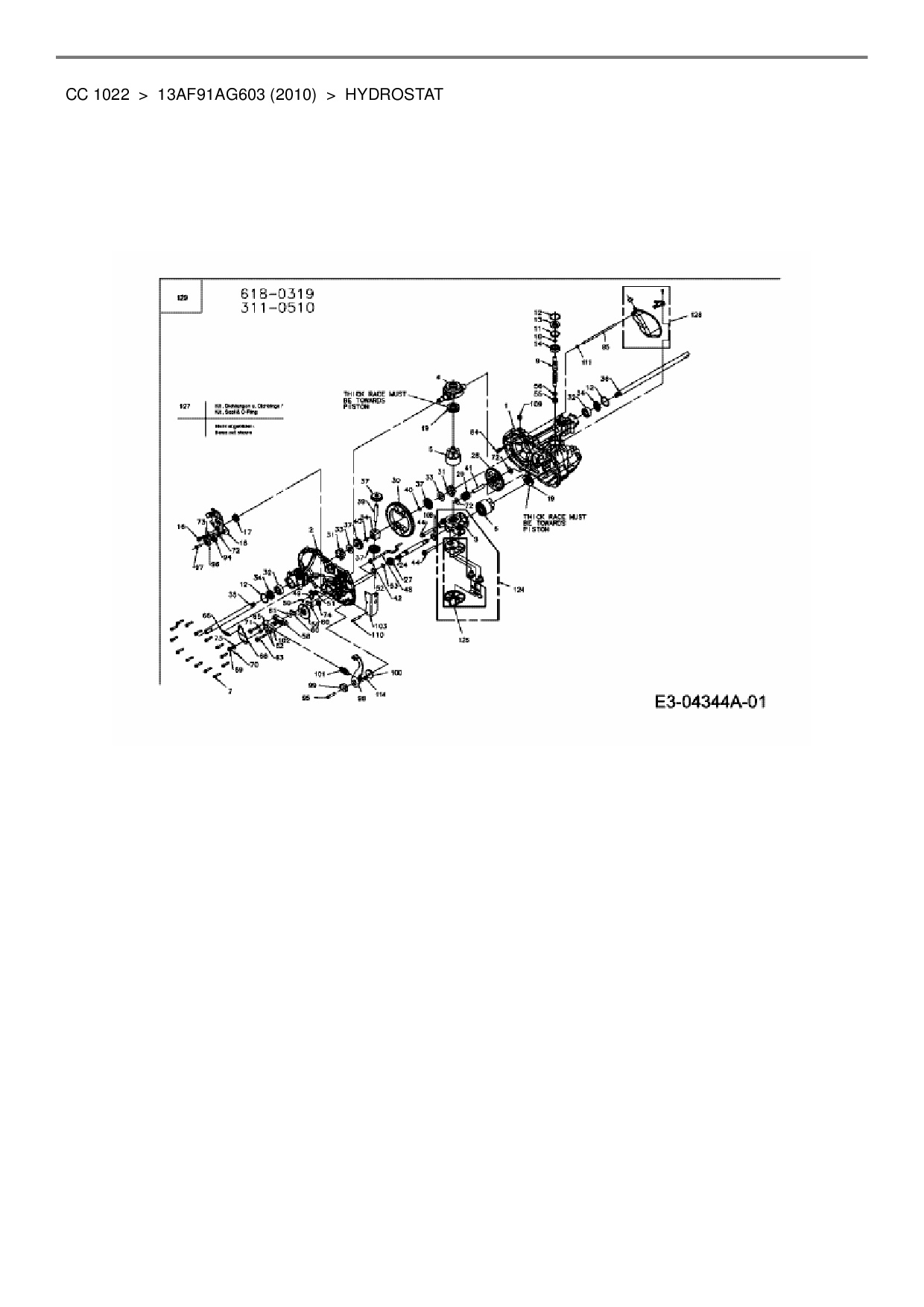 Download Ersatzteil-Zeichnung Cub Cadet CC 1022 Zeichnung Hydrostat (PDF-Format)