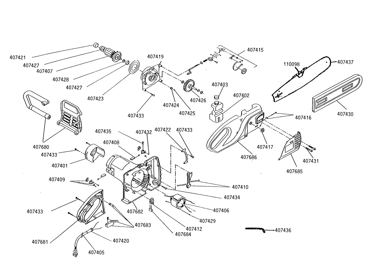 Zeichnungen von AL-KO Kettensägen KE 40-16 II mit der Geräte-Artikelnr. 110509: