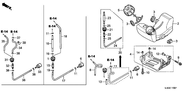 Ersatzteile für Honda Motorsensen UMK425E2 UEET (UEET/A) Baugruppe KRAFTSTOFFTANK (1)