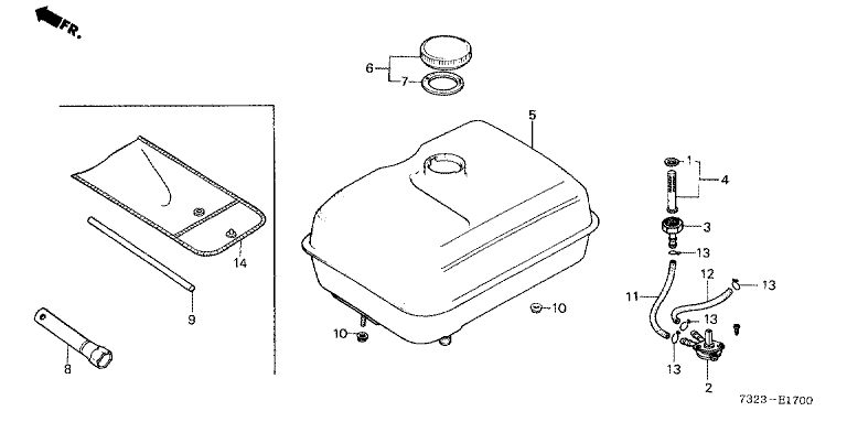 Ersatzteile für Honda Schneefräsen HS50 TG (TG) Baugruppe KRAFTSTOFFTANK/WERKZEUGE