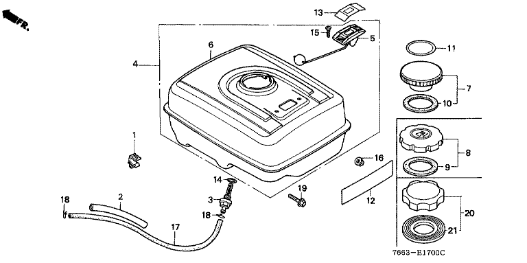 Ersatzteile für Honda Schneefräsen HS1136K1 G (G) Baugruppe KRAFTSTOFFTANK