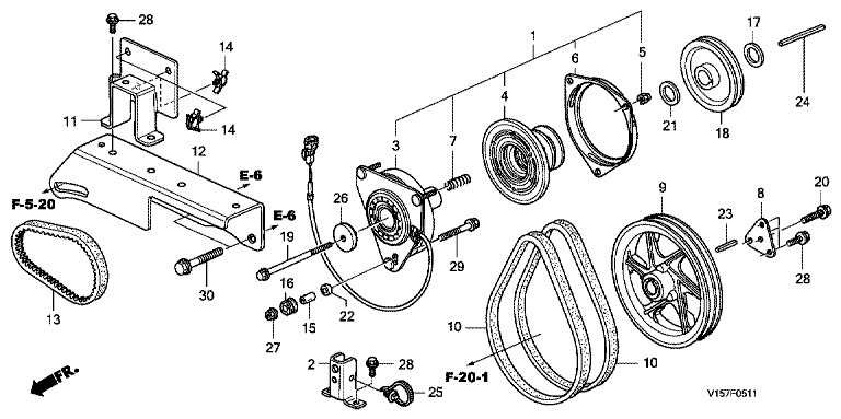 Ersatzteile für Honda Schneefräsen HSM1390I E (E) Baugruppe KUPPLUNG/ABTRIEBSRIEMENSCHEIBE (HSM1390I)